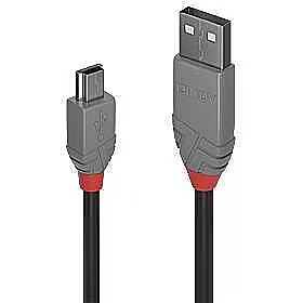 LongDesc - From the Lines cable connectivity concept developed by Lindy, Anthra Line USB 2.0 Type A to Mini-B cables are the professional choice for high performance connections in commercial AV and IT installations.Anthra Line USB 2.0 cables are premium connections that feature double shielded construction with copper conductors for performance and corrosion resistance. High quality gold plated contacts and nickel connectors maintain optimal signal integrity and maximum reliability.Data transfer speeds up to 480Mbps are supported for the quick and effortless transfer of large data volumes.Anthra Line USB 2.0 Type A to Mini-B cables are available in lengths from 0.2m to 5m.