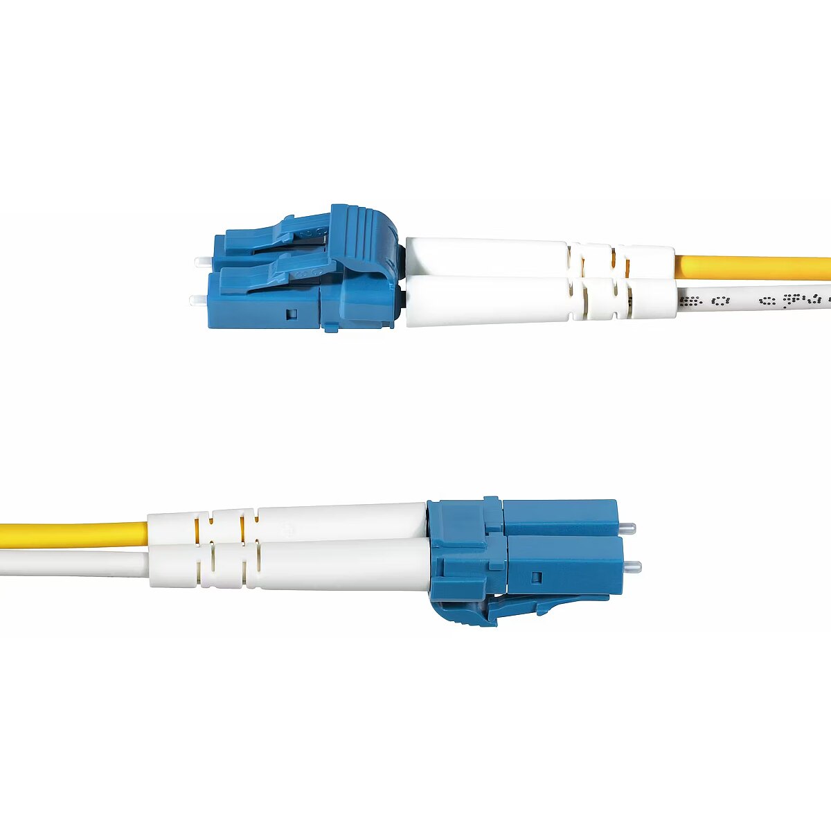 LongDesc - Enhance the performance capabilities of CWDM applications over an OS2 fiber networkOS2 LC to LC Single Mode Duplex Fiber Optic Patch cable facilitates connectivity across 100G networks. It supports Coarse Wavelength Division Multiplexing (CWDM) across an extended wavelength range of 1260-1625nm, improving channel isolation for optimal signal strength over long distances.CompatibilityThis 9/125µm Single Mode fiber cable supports 1260-1625nm laser-optimized sources and is ideal for critical connections between servers, switches, and data center equipment. It is backward compatible with OS1 networks, ensuring a reliable connection in legacy fiber environments.Engineered for Optimal PerformancePrecision-manufactured ceramic ferrules ensure accurate fiber alignment for an insertion loss below 0.3dB. Ultra Physical Contact (UPC)-polished LC to LC fiber ends greatly improve return loss characteristics over older PC polishing techniques. The Bend Insensitive fiber core is surrounded by a layer of low refractive index material. This material reduces the amount of light that can escape the fiber cable by reflecting the light back into the fiber. The OS2 fiber patch cord is engineered for low attenuation and performance that exceeds ITU-T G652.D/G657.A1 and IEC60703-2-50 type B1.3/B6.a1 industry standards.LSZH Cable JacketHoused in a Low-Smoke Zero-Halogen (LSZH) flame-retardant jacket, the OS2 fiber cable emits low smoke and toxic fumes when exposed to extreme heat or in the event of a fire. This enables safer cable installations in areas with poor ventilation including some industrial settings, self-contained environments such as trains and aircraft, as well as residential settings where compliance with building codes must be considered.Each OS2 fiber cable is individually tested for insertion loss performance and includes a test report, for guaranteed compatibility and 100% reliability.The StarTech.com Advantage