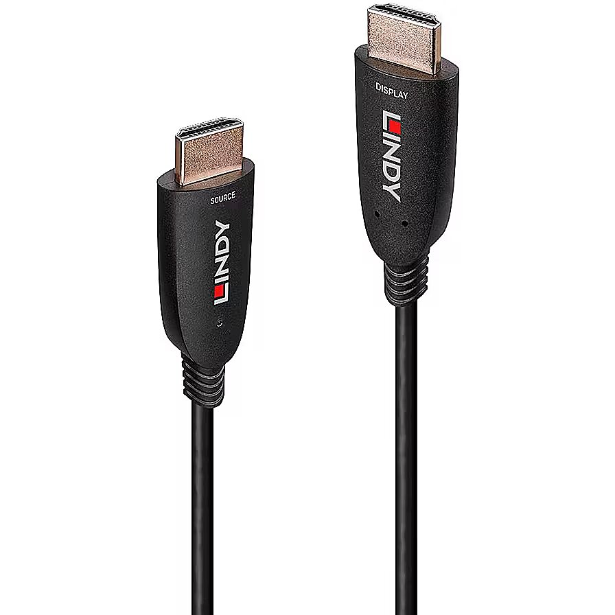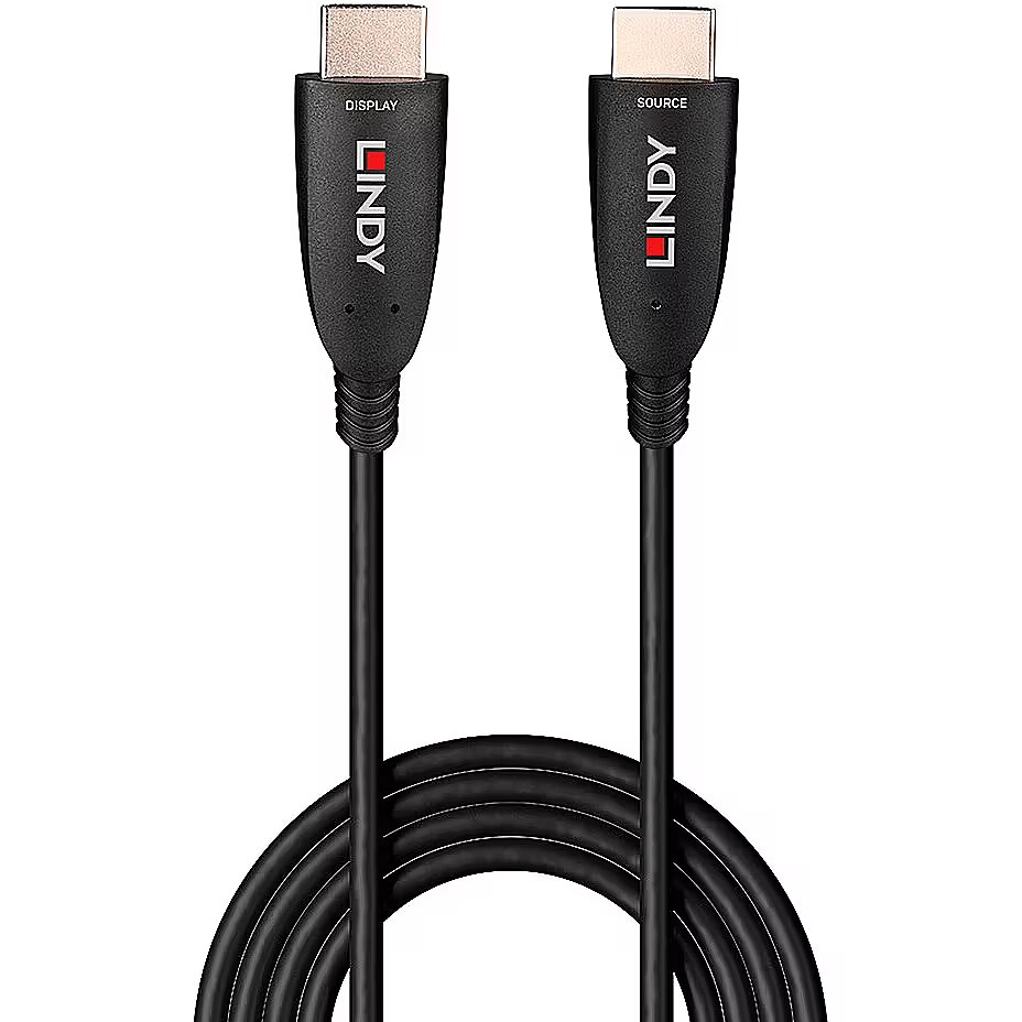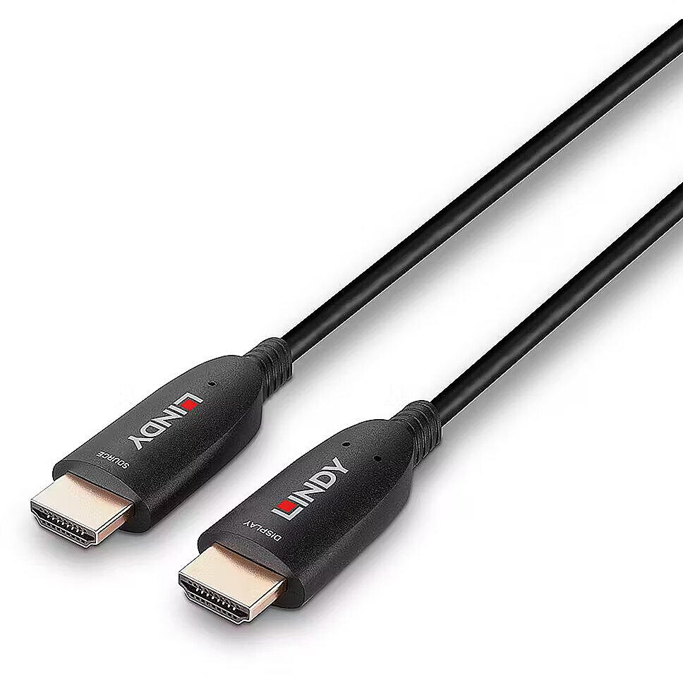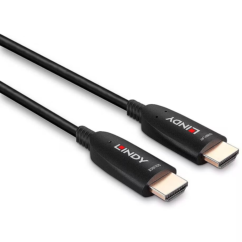 LongDesc - Lindy's range of Fibre Optic Hybrid cables are a professional solution for extending HDMI signals over longer distances. Combining the flexibility and high EMI and RFI resistance of fibre optic cable with standard copper cabling, these hybrid cables are ideal for use in critical AV setups, commercial displays or high-performance residential installations.The internal technology provides uncompressed amplification of the HDMI signal, allowing long distance extension of HDMI 8K content that is simply not possible with passive cables.With 48Gbps bandwidth, these cables support HDMI 2.1 resolutions up to 3840x2160@120Hz, and 7680x4320 / 10240x4320@60Hz. Content can be viewed with incredible detail and clarity at higher refresh rates for optimum viewing of movies, graphics or imagery.As well as static HDR, HDMI hybrid cables also brings further support for dynamic HDR formats such as Dolby Vision and HDR10+. This provides every moment of content, whether scene by scene or even frame by frame, with a much wider colour gamut based on the BT.2020 colour space, higher peak brightness and deep blacks for optimum contrasts as well as greater depth of colour. This is essential for the transmission of VOD content including TV shows and movies, as well as VR and video games, ideal in eSports, retail setups and superior home cinema installations.The advance of audio control and formats is also brought forward with HDMI. eARC support further simplifies connectivity with compatible sound systems, amplifiers and soundbars, passing lossless audio from the source to the connected output over the cable. eARC also supports high bitrate audio with a sample rate of up to 192kHz and up to 32 channels. This allows for the use of object based audio formats such as Dolby Atmos and DTS:X, truly surrounding the viewer in immersive sound to enhance and compliment the video content. This is great for multi-dimension residential setups, cinema installations, or inspiring event distribution.Whether used with residential gaming setups or premium eSports events, these AOC cables also provide extensive features for enhancing the gaming experience, whilst also benefitting fast moving sports and entertainment content. VRR (Variable Refresh rate) reduces and eliminates lag, judder and frame tearing for a much fluid gameplay experience whether it's for quick reactions in an action game or scoring a last minute winner in sports games. ALLM (Auto Low Latency Mode) further helps this by enabling the ideal latency setting for smooth transitions of content. QFT (Quick Frame Transport) also assists with ensuring low latency, by transporting frames at a higher rate which can prove essential with real time VR gameplay. These features also benefit various other industries such as sports bar distribution, medical facilities, experiential displays or news broadcasting.Please Note: eARC/ARC and CEC functions are not supported for lenghts over 20m.We can make cables up to 200m on request, contact us for quotations.
