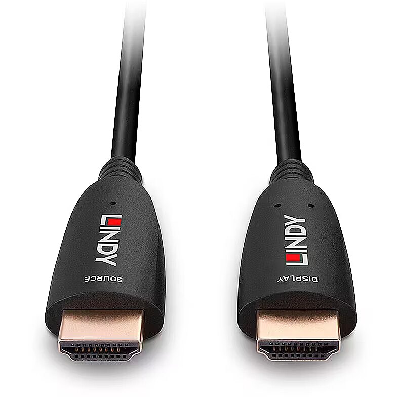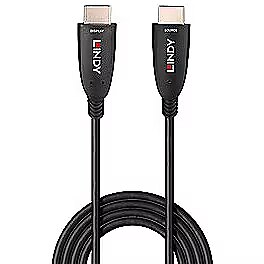 Technical_details - Lindy's Fiber Optic Hybrid HDMI 2.1 Cable 38510 combines copper and fiber optic cables for a hybrid HDMI connection and is a professional solution for transmitting HDMI signals over long distances. These hybrid cables combine the flexibility and high EMI/RFI resistance of fiber optic cables with standard copper cables and are ideal for critical AV configurations or commercial installations. The internal technology provides uncompressed amplification of the HDMI signal, allowing HDMI 8K content to be extended over long distances, which is simply not possible with passive cables. With a bandwidth of 48 Gbps, the cables support HDMI 2.1 resolutions of up to 3,840 x 2,160@120Hz and 7,680 x 4,320 / 10,240 x 4,320@60Hz. Content can be displayed at higher refresh rates with incredible detail and clarity for optimal viewing of movies, graphics or images. In addition to static HDR, the HDMI hybrid cables also offer support for dynamic HDR formats such as Dolby Vision and HDR10+. This provides every moment of content, whether scene by scene or even frame by frame, with a much wider color gamut based on the BT.2020 color space, higher peak brightness and deep blacks for optimal contrast, as well as greater color depth. eARC support simplifies connectivity with compatible sound systems, amplifiers and soundbars by routing lossless audio signals from the source over the cable to the connected output. eARC also supports high bitrate audio signals with a sampling rate of up to 192 kHz and up to 32 channels. This enables the use of object-based audio formats such as Dolby Atmos and DTS:X, which immerse the viewer in realistic sound to enhance and complete the video content. VRR (Variable Refresh Rate) reduces and eliminates lag, stuttering and frame tearing for a smooth gaming experience, be it for quick reactions in an action game or a last-minute win in sports games. ALLM (Auto Low Latency Mode) further supports this by enabling the ideal latency setting for smooth content transitions. QFT (Quick Frame Transport) also helps ensure low latency by transporting frames at a higher rate. Item No.: 1909904 Type cable Color: Black EAN 4002888385107 Manufacturer no. 38510 Fiber Optic Hybrid series Application example For demanding AV setups, commercial displays Audio / Video area Connection of 1x HDMI (male) to 1x HDMI (male) HDMI 2.1 protocol Video classification HDMI Ultra High Speed Taps 2 Properties external Premium version Feature Gold plated contacts and connectors Further information Sheath diameter 4.4mm, sheath material PVC, conductor material glass fiber and copper, supported bandwidth 48 Gbit/s, maximum resolution: 3,840 x 2,160@120Hz 4:4:4 10bit and 7,680 x 4,320 / 10,240 x 4,320@60Hz 4:2: 0 10bit, minimum bending radius 50mm Cable length 10 meters