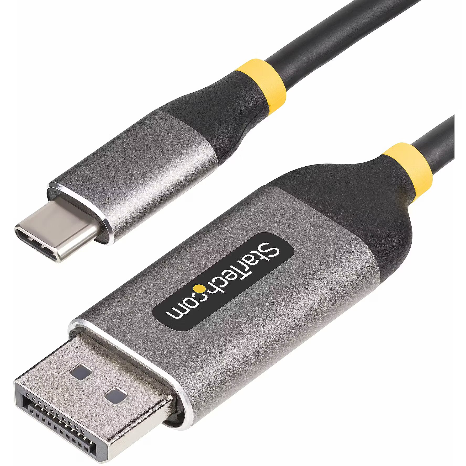 LongDesc - Connect a DisplayPort Alt Mode-enabled USB-C source to a DisplayPort monitor with support for resolutions up to 8K at 60HzConnect an 8K 60Hz or 4K 144Hz DisplayPort monitor to a DP Alt Mode-enabled USB Type-C source up to 9.8ft (3m) away with this USB-C to DisplayPort adapter cable.High-Resolution HDR VideoThis USB-C to DisplayPort Cable enables resolutions of up to 8K 60Hz and is DisplayPort 1.4 compliant. It supports HDR10, DSC, and 2 channel audio.Hardware PlatformSingle MonitorDisplayPort Alt ModeIntel 11th Gen & Later Processors8K 60Hz or 4K 144Hz*DisplayPort 1.4Nvidia RTX3000 and AMD RX6000 or later8K 60Hz or 4K 144HzDisplayPort 1.4Intel 10th Gen & Earlier4K 60HzDisplayPort 1.4Apple M1/M2/M3 + Pro & Max4K 60Hz**DisplayPort 1.4*DSC support required to reach maximum resolution capabilities on Intel 11th Gen or later**Apple MacBook's with M1/M2/M3 Pro/Max silicon do not support 8K 60Hz over USB-C DP Alt ModeUniversal CompatibilityThe USB-C to DisplayPort Converter Cable is compatible with laptops and devices from various brands such as Dell, HP, Lenovo, Microsoft, and more. It works with all hardware platforms and any operating system. The USB Type-C to DisplayPort Cable requires no drivers or software and works with USB-C DP Alt Mode, USB4, Thunderbolt 3, and Thunderbolt 4 laptops and devices.Thoughtfully DesignedCombining a video adapter and cable minimizes potential points of failure and signal loss. A latching DisplayPort connector reduces the risk of accidental disconnections. The cable is equipped with aluminum connector shells, providing enhanced durability, and shielding from Electromagnetic Interference (EMI).The StarTech.com Advantage
