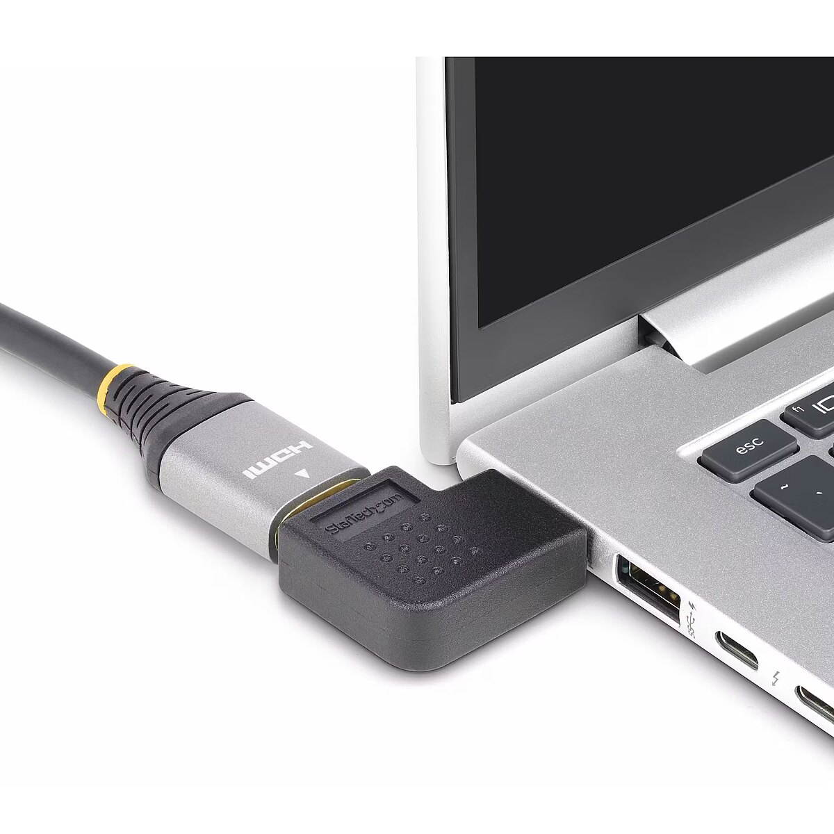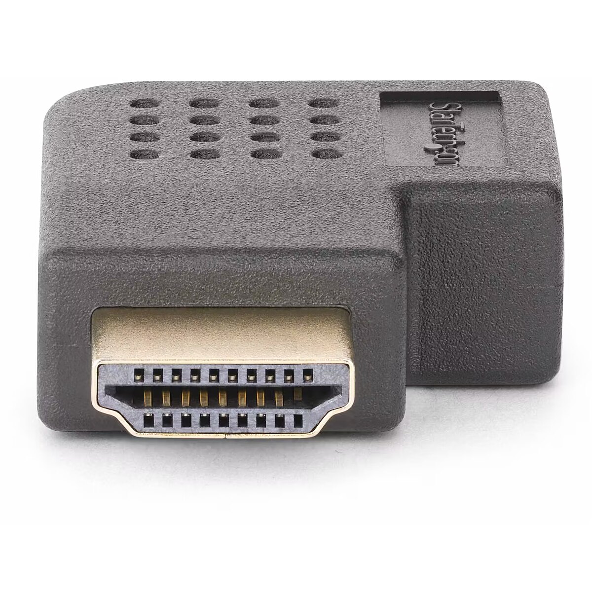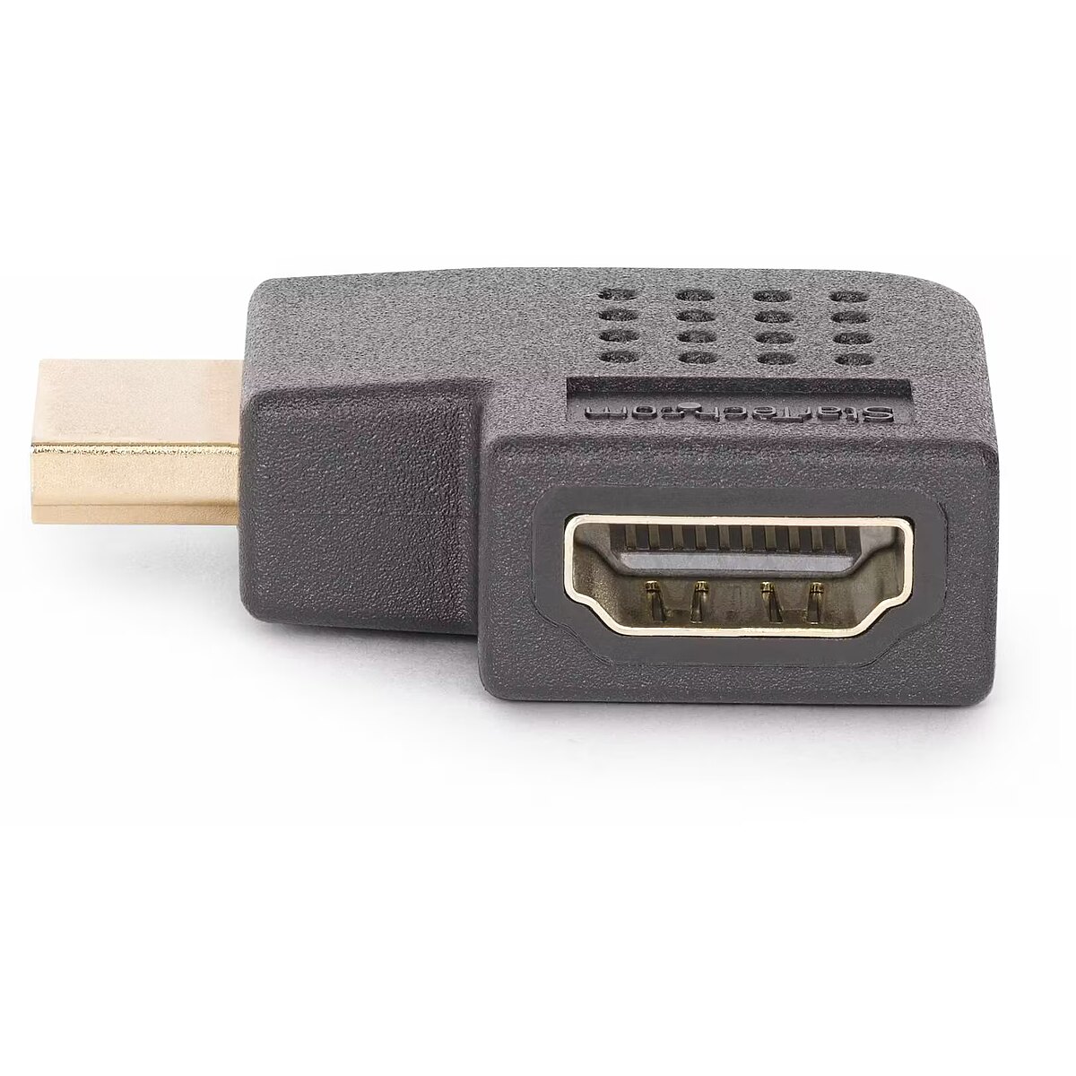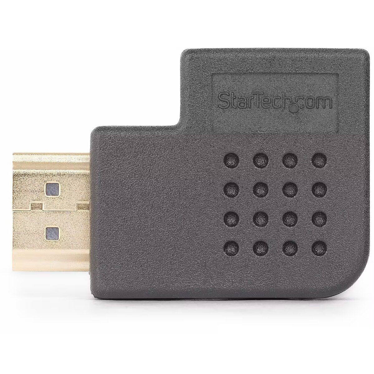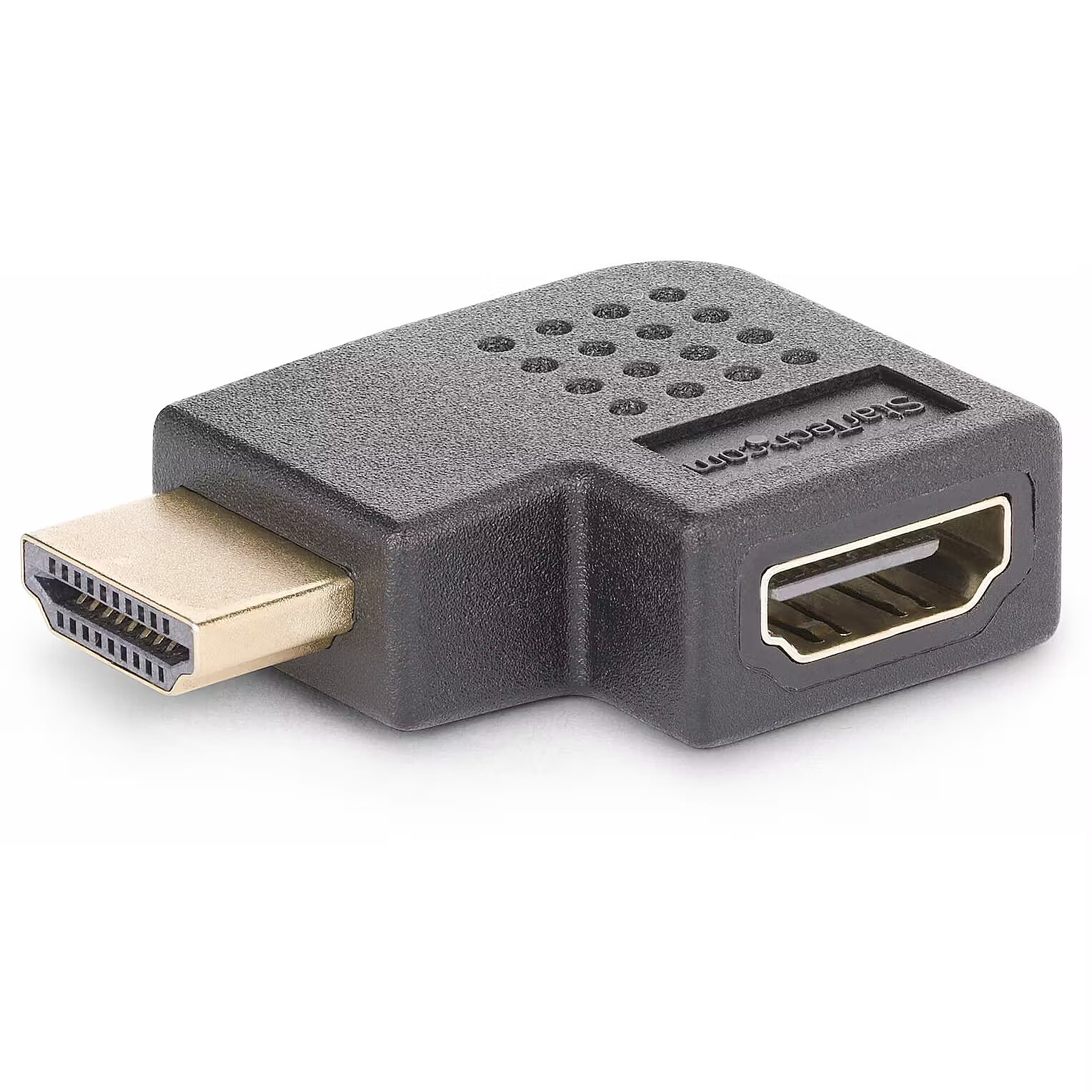 LongDesc - Enable improved access to HDMI ports and reduce connector strain from bendingThis compact Right-Angled HDMI Adapter acts as a port saver, mitigating strain on HDMI ports and connectors. Ideal for installations with limited depth, it enables access to concealed or rear-facing HDMI ports, and reduces wear and tear resulting from frequent connections.Full HDMI CapabilityThis Right Angle HDMI adapter supports all HDMI 2.0 specifications:• Resolutions up to 4K 60Hz• High speeds with a bandwidth of up to 18Gbps• High Dynamic Range (HDR) for higher contrast ratio and vibrant colors• Crystal clear sound with up to 32 channels of digital audio• Supports 21:9 cinema aspect ratio and 3D video• Backward compatible with previous versions of HDMI• Supports Consumer Electronics Control (CEC)Enjoy Optimal Picture QualityFully compatible with HDMI 2.0 equipment, this HDMI 2.0 Port Saver maintains optimal picture quality at resolutions up to 4K 60Hz and bandwidths up to 18Gbps. Backward compatibility ensures seamless integration with existing HDMI devices.The StarTech.com Advantage