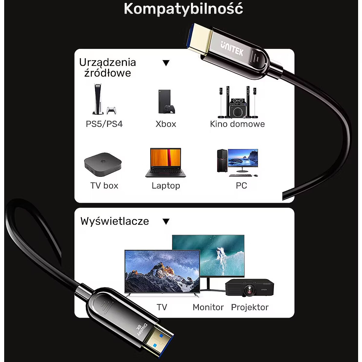 ShortDescription - Unitek Kabel optyczny HDMI 2.1 AOC 8K 120Hz 40m
