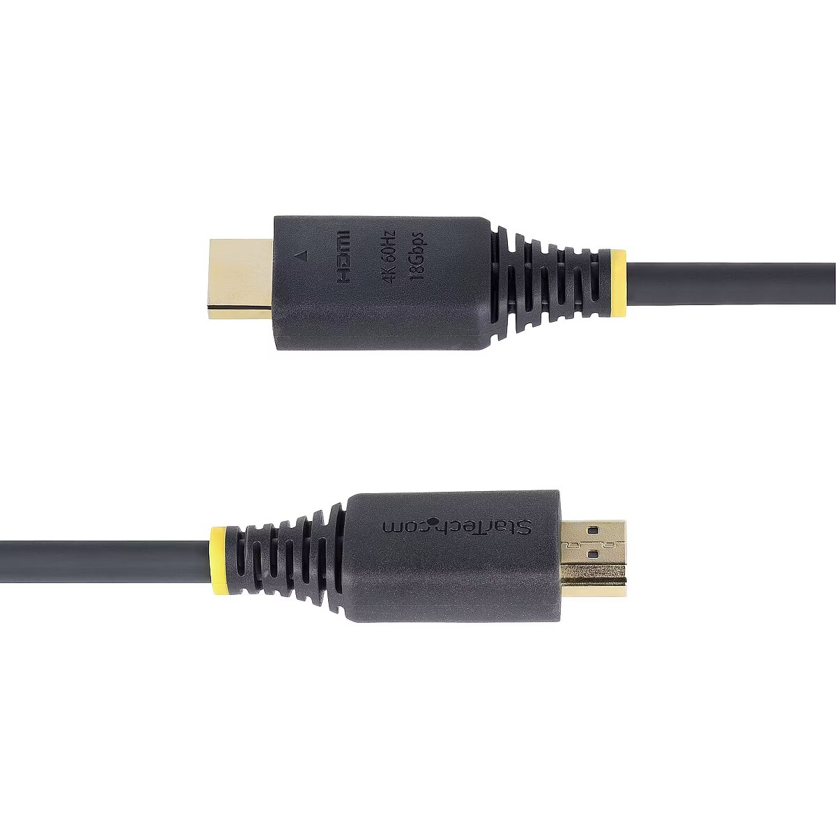 LongDesc - Connect reliably between HDMI UHD devices using this Premium Certified HDMI CableConnect to a 4K UHD TV or monitor, using this Premium Certified HDMI 2.0 Cable. The connector markings enable quick visual identification, distinguishing this cable from other similar-looking or unmarked HDMI cables. Eliminate guesswork and always choose the appropriate cable to support full HDMI 2.0 with Ethernet capabilities.Seamless CompatibilityFor seamless operation between HDMI-enabled devices, the Premium HDMI Cable is Certified for guaranteed HDMI 2.0 performance and backward compatibility. Certified cables provide consistent, reliable performance across multiple resolutions and refresh rates.Durable DesignThis High Speed HDMI Cable features a flexible TPE outer jacket that is tested to withstand 2,000 bending cycles at -/+60 degrees, and routes easily around corners and desk edges. Robust strain reliefs enable convenient positioning of the cable. The durable Gold-plated connectors are rated to operate beyond 10,000 insertions.Supported HDMI 2.0 Features:This Certified HDMI Cable supports full HDMI 2.0 features:• Resolutions up to 4K 60Hz using a compatible HDMI source and display• Supports high refresh rates including 1440p 144Hz and 1080p 240Hz• 21:9 Aspect Ratio support for cinematic viewing experiences• High Dynamic Range (HDR10) for higher contrast ratio and vibrant picture quality• High-Bandwidth Digital Content Protection (HDCP) 2.2 for a secure connection between source and display• Audio Return Channel (ARC) for sending audio from the TV back to an AV receiver or soundbar• Up to 32 Uncompressed Digital Audio Channels• HDMI Ethernet Channel (HEC) for network connectivity over HDMI• Backward compatible with previous HDMI versionsThis HDMI 2.0 Cable is constructed with braided aluminum mylar shielding to minimize EMI for clear, consistent audio/video output and long-term reliable performance.The StarTech.com Advantage