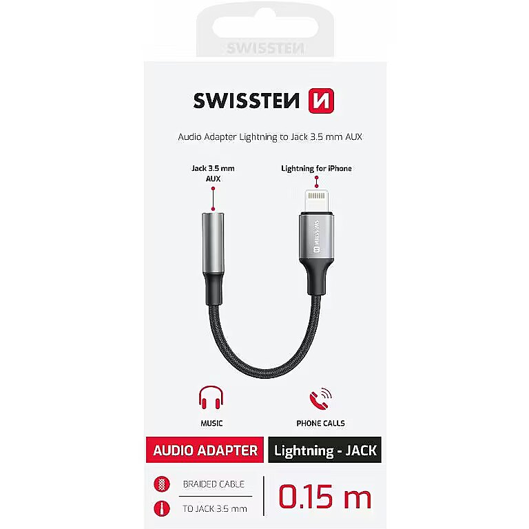 title_en - Swissten Lightning to Jack 3.5mm AUX Audio Adapter for iPhone and iPad 15 cm