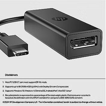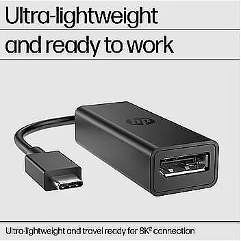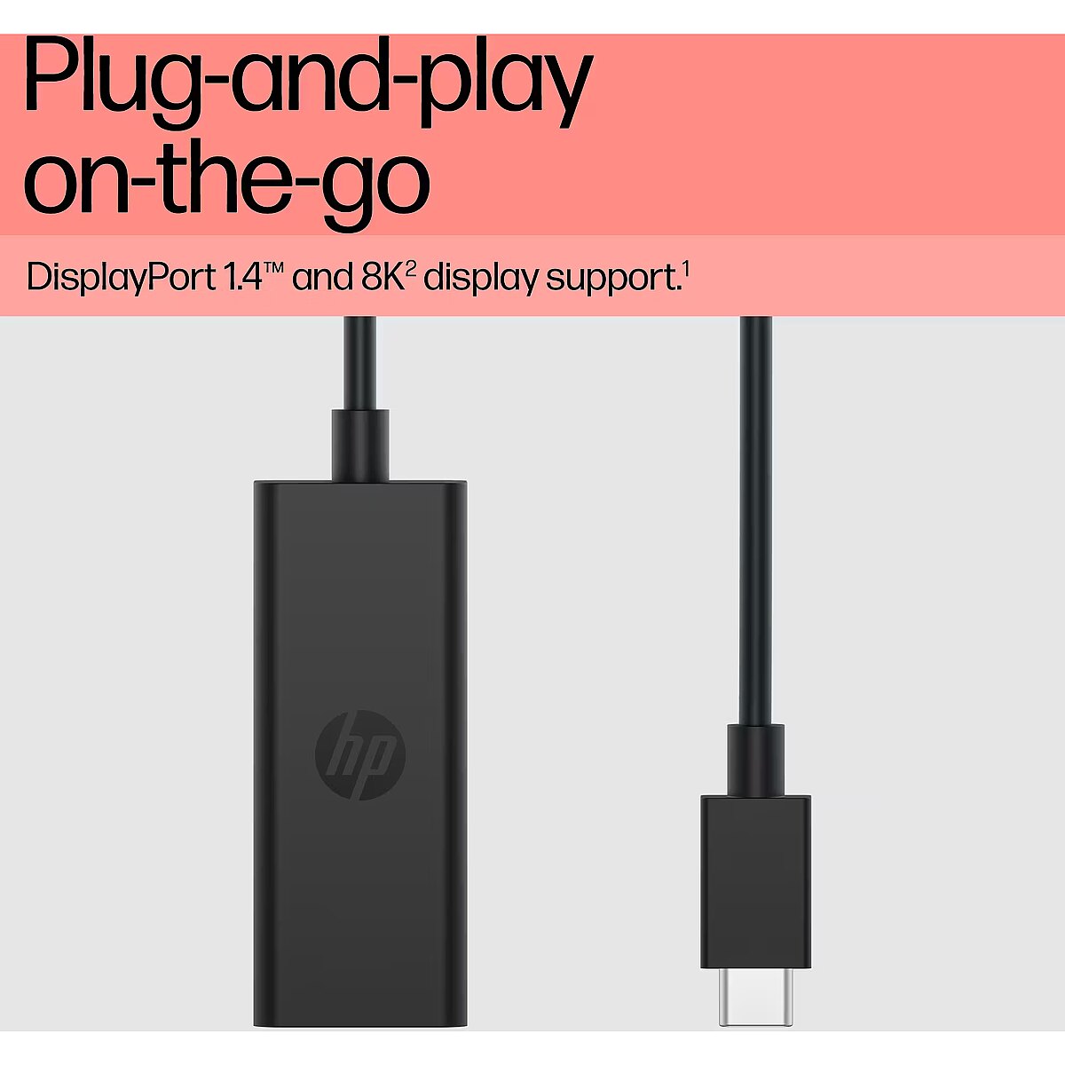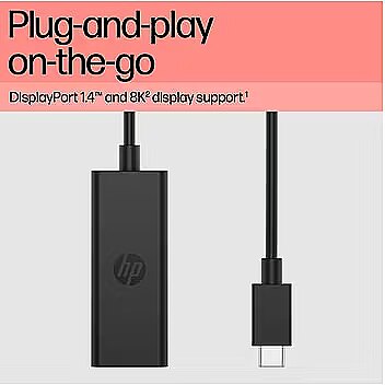 LongDesc - Simple, powerful, portableUnlock 8K[2] with one connection. The HP USB-C to DisplayPort Adapter G2 supports stunning displays with an easy-to-use plug-and-play[1] design. Gain the power of broad compatibility for an unrestricted workflow, anywhere you go.