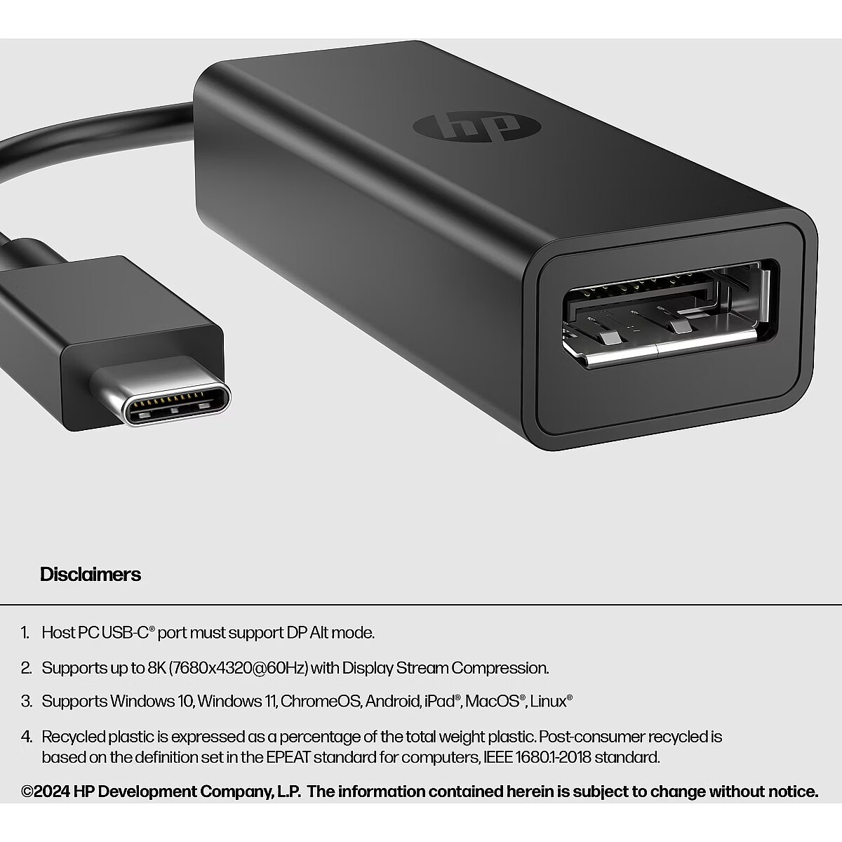 ShortSummaryDescription - HP USB-C to DisplayPort Adapter G2, 0.12 m, DisplayPort, USB Type-C, Female, Male, 7680 x 4320 pixels