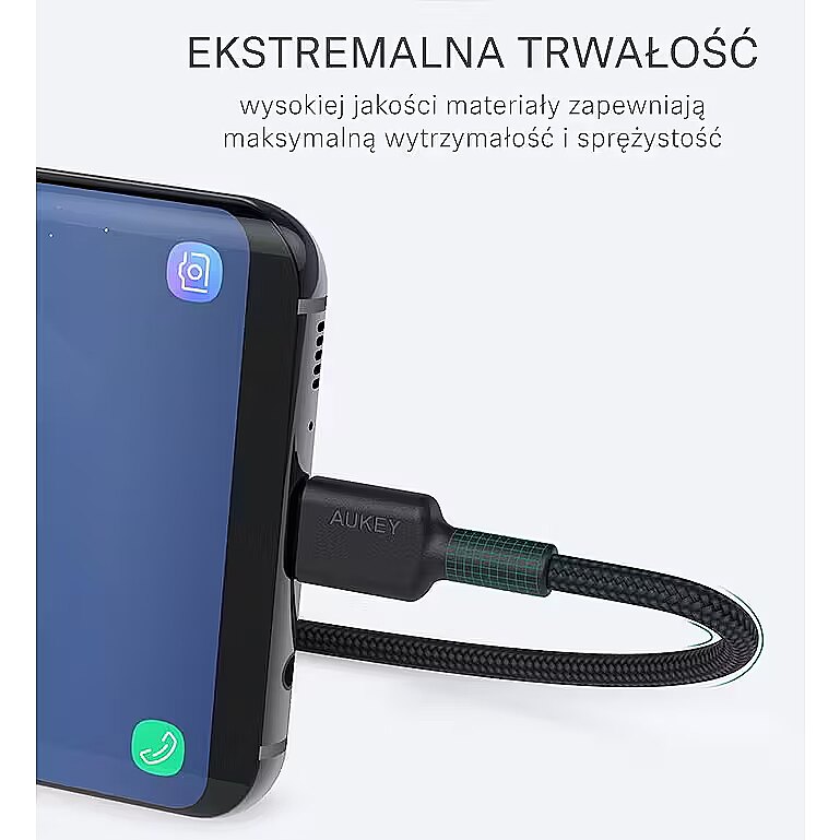 Description - AUKEY CB-CA2 OEM szybki kabel Quick Charge USB C-USB A | 2m Materiał: plecionka nylonowa Bardzo szybkie kable do synchronizacji lub ładowania Kable spełniają wymagania Power Delivery, Quick Charge 4.0 / 3.0 / 2.0 / 1.0, AiPower, Fast Charge itp. Transfer danych do 5 Gbps Natężenie: do 3A Napięcie: do 20V Moc: do 60W Pozłacane złącza Wielowarstwowe ekranowanie Wersja OEM: W foliowym blistrze, bez tekturowego pudełka W zestawie: Kabel CB-CA2 Black oraz rzep/opaska