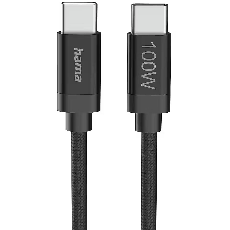 MediumDescription EN - The Hama Fabric USB-C to USB-C charging cable delivers up to 100W of power for extremely fast charging of smartphones, tablets and even high-performance laptops. It supports Power Delivery 3.1 and Quick Charge™ 4+, offers data transfer speeds up to 480 Mbit/s and features a durable braided nylon sheath with aluminium connectors for excellent resistance to bending and cable damage. • Up to 100W fast charging• Supports Power Delivery 3.1 (EPR) and Quick Charge™ 4+• Universal compatibility with all USB-C devices• Data transfer speeds up to 480 Mbit/s• Hard-wearing braided nylon cable• Automatic device recognition for optimal charging