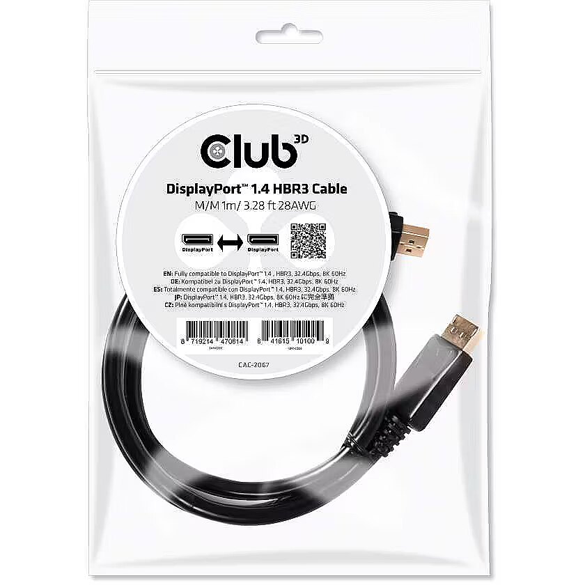 Vendor Homepage - www.club-3d.com/en/detail/2428/displayport_1.4_hbr3_cable_male-male_1m-3.28ft_28awg/