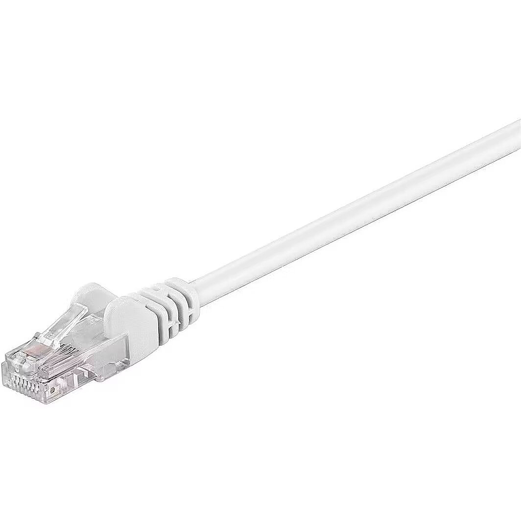 Other features > Technical features - CCA copper mixture unshielded LAN/network cable to connect network components with 2 x RJ45 connectors with length indication on the slimline strain relief with latch protection pair-sequence acc. to EIA/TIA 568B suitable for Gigabit (10/100/1000 Mbit) network Technical specifications Connections Connection, type RJ45 male (8P8C) Connection 2, type RJ45 male (8P8C) Latch protection both sides Connection, shielding no Cable Cable type round cable Specification CAT 5e Shielding class U/UTP AWG 28/7 (stranded) Cable sheath diameter (approx.) 4.5 mm Inner conductor material CCA (copper-clad aluminium) Cable length 7.5 m Material cable sheath PVC Kink protection both sides Signal transmission max. bandwidth 100 MHz General Consumption Unit 1 pc. in polybag Color white Markings CE, WEEE