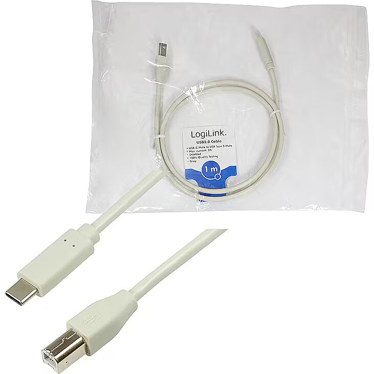 ShortDescription - kabel LogiLink USB 2.0 B - USB-C 1m szary