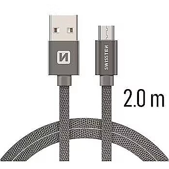 description_en - High quality textile data cable USB / Micro USB with length of 2,0 m. The cable reinforced to deliver a higher current (up to 3A) and can handle fast 480 Mb/s data transfer. Packed in Swissten retail pack.