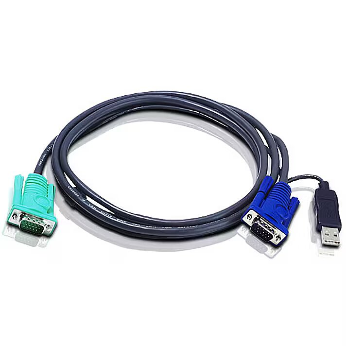 ShortSummaryDescription - ATEN USB KVM Cable 3m, 3 m, VGA, Black, HD-15, USB A, SPHD-15, Male/Male