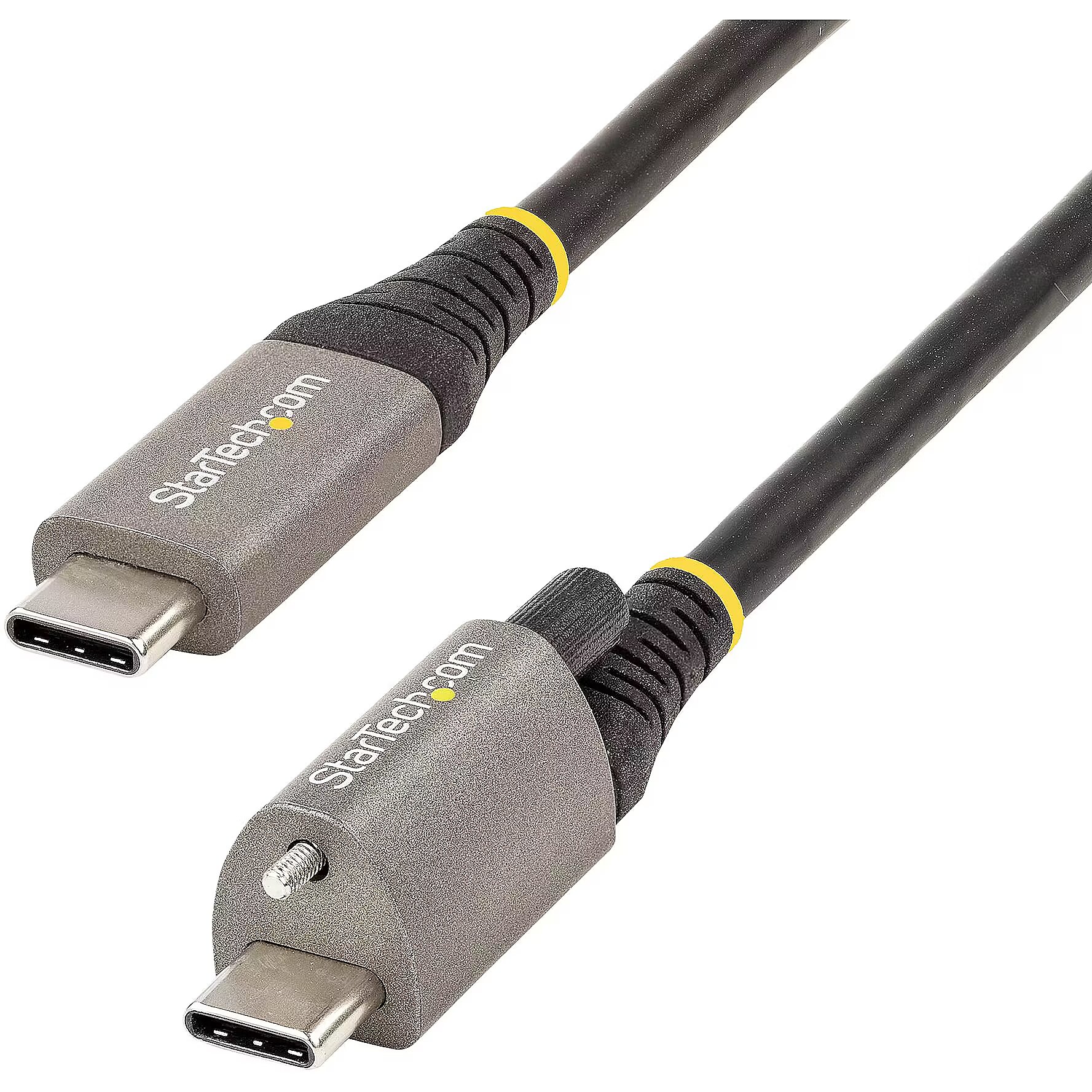 LongDesc - Top Screw Locking USB C Cable 10Gbps | 100W (5A) Power Delivery | DP Alt ModeHigh Performance CableThis top screw locking USB-C 3.2 Gen 2 10Gbps cable lets you connect your USB Type-C devices for syncing, charging, and powering your devices.The USB-C cable is also compatible with Thunderbolt 3 ports, allowing you to connect and charge your USB-C devices using your Thunderbolt 3 laptop.Reliable Connection with Screw Locking USB-CThis cable features a single locking screw that can securely connect to your USB-C peripherals and can prevent accidental disconnection from your devices such as external hard drives or docking stations.The screw is designed to fit all devices that use a standard top screw locking input, such as StarTech.com's DK31C3HDPD .The knurled screw can easily be removed from the cable completely allowing it to be used as a standard USB-C cable if required.Supports up to 100W (5A) with Power Delivery 3.0With up to 100W (5A) of power delivery, you can power and charge a USB-C laptop, such as your Apple MacBook or Microsoft Surface Book. Simply connect the cable to your USB-C laptop and to a USB-C wall charger.Deliver 8K video with DisplayPort 1.4 Alt ModeThe cable supports 8K 30Hz video with DisplayPort 1.4 and is backward compatible to connect your docking station or laptop to a monitor that supports 4K or 1080p resolutions.Charge your mobile devicesWhen used with devices that support PD 3.0, this cable charges up to 20V and 5A for a maximum of 100W. It can decrease your charge time and make sure your mobile devices are ready, whenever you need them.Quality BuildThis cable is constructed with durable long-lasting, flexible TPE jacket and strain relief. It has been tested to withstand 4000+ bends. It is built with aluminum-mylar foil with 85% braid coverage and EMI shielding for improved signal integrity.The USB31CCTLKV50CM from StarTech.com is backed by a 2-year warranty for guaranteed reliability.The StarTech.com Advantage