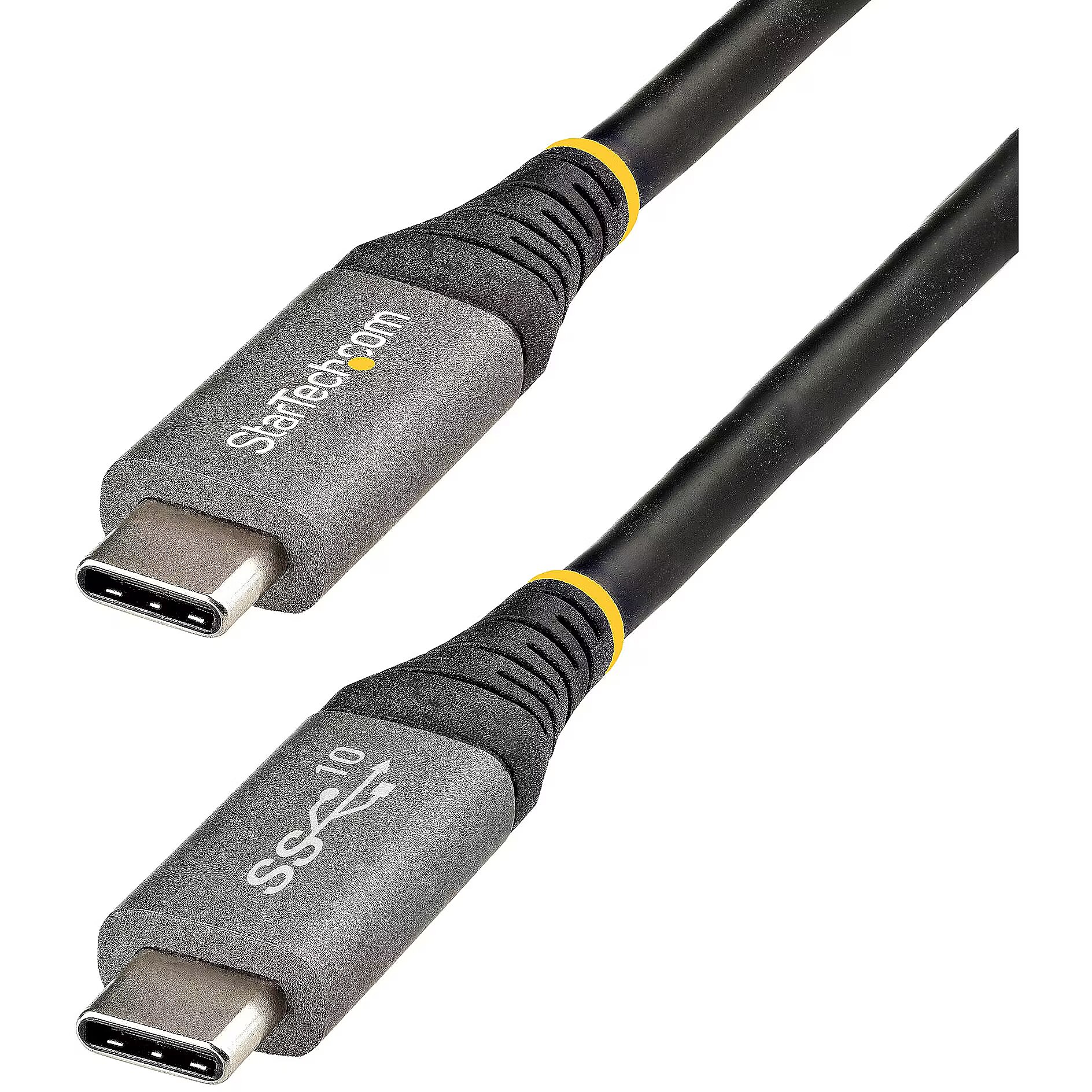 LongDesc - USB C Cable 10Gbps | USB-IF Certified |100W (5A) Power Delivery | DP Alt ModeThis USB 3.2 Gen 2 10Gbps USB-C™ cable lets you connect your USB Type-C™ devices for syncing, charging and powering your devices.The cable is also compatible with Thunderbolt™ 3 ports, which means you can charge and sync your USB-C mobile devices using your Thunderbolt 3 laptop.Power your USB-C devicesWith up to 5A (100W) of power delivery, you can power a USB-C laptop, such as your Apple MacBook or Microsoft Surface Book. Simply connect the cable to your USB-C laptop and to a USB-C wall charger.You can use this USB Type-C cable to power your USB-C hard drive from the USB-C port on your laptop.Charge your mobile devicesWhen used with devices that support PD 3.0, this cable charges up to 20V and 5A for a maximum of 100W. It can decrease your charge time and make sure your mobile devices are ready, whenever you need them.Deliver 8K Video with DisplayPort 1.4 Alt ModeThe cable supports 8K 30Hz video with DisplayPort 1.4 and is backward compatible to connect your docking station or laptop to a monitor that supports 4K or 1080p resolutions.Provide superior connections with USB-IF certified cablesThe cable has undergone rigorous compliance testing and is certified by USB-IF (USB Implementers Forum) to meet all USB 3.2 specifications. This includes all environmental, electrical and mechanical standards, which ensures a reliable, high-quality cable for all your USB-C devices.The USB31CCV1M from StarTech.com is backed by a 2-year warranty for guaranteed reliability.The StarTech.com Advantage