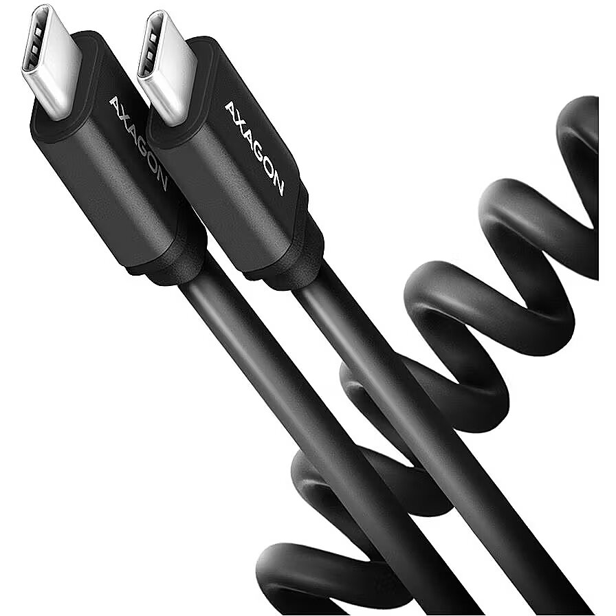 LongDesc - Twisted connection USB-C USB-C Data and Charging AXAGON BUCM-CM10TB TWISTER USB 2.0 cable with USB-C male connectors at both ends. The cable is designed for fast data transfers and notebook, phone, tablet and other mobile device charging. It supports up to 480 Mb/s data transfer and charging with current up to 3A. Durable data and power cable with extended service life is equipped with metal terminals, connectors with a nickel-plated surface and gold-plated contacts. Cable conductors are made of Tin-plated oxygen free copper. High-quality cable insulation, made of flexible TPE, guarantees maximum durability and also maintains sufficient flexibility. Thanks to the twisted and winding design, the cable takes up a minimum of space and is an ideal accessory for the car. In the shortened state, the cable is only 35 cm long and does not obstruct anywhere. When stretched, it comfortably reaches 60 cm away from the socket.Power cables 22AWG (lower number = larger cross-section and lower wire resistance) guarantee fast charging of phones and other mobile devices. Cable also supports notebook charging using Power Delivery 60W technology. Data wires 30AWG together with high-quality shielding, ensure reliable data transmission. Double shielding protects transmitted signals from adverse interference.Durable cable gland reduces dangerous cable bending. The mechanical resistance of the cable is also increased by the aluminum terminal covers.