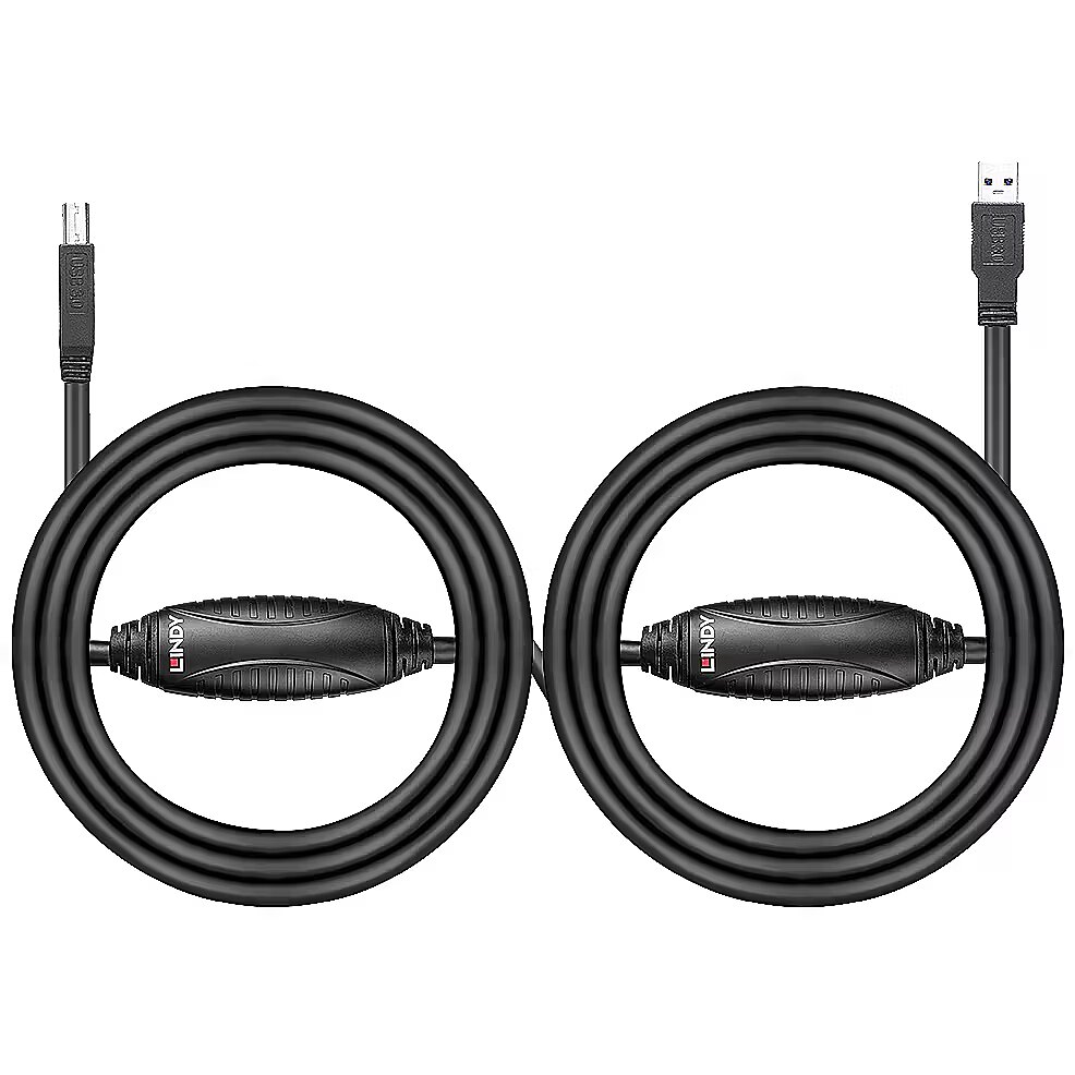 LongDesc - The Lindy USB 3.0 Active Cable uses built-in active electronics to extend the cable length of a USB 3.0 device by an additional 10m whilst continuing to support data transfer rates of up to 5Gbps. With USB A male and USB B male connectors this product allows Type B devices such as printers to be connected directly at longer distances and ensures flexible positioning.The Lindy USB 3.0 Active Extension Cable is compatible with all USB Type A equipped computers. With plug and play functionality, this extension cable can be installed quickly and with minimum fuss.It is recommended that this extender is used with low power or self powered USB peripherals and not high power consuming devices, unless they have their own power supply.Information about USB 3.0, 3.1 and 3.2USB 3.0, USB 3.1 and USB 3.2 PCs, cables and devices are all compatible with each other, when using either a USB Type A or USB Type C host interface.USB 3.0, USB 3.1 Gen 1 and USB 3.2 Gen 1 all support data transfer rates up to 5 Gbps. USB 3.1 Gen 2 and USB 3.2 Gen 2 both support data transfer rates up to 10 Gbps.