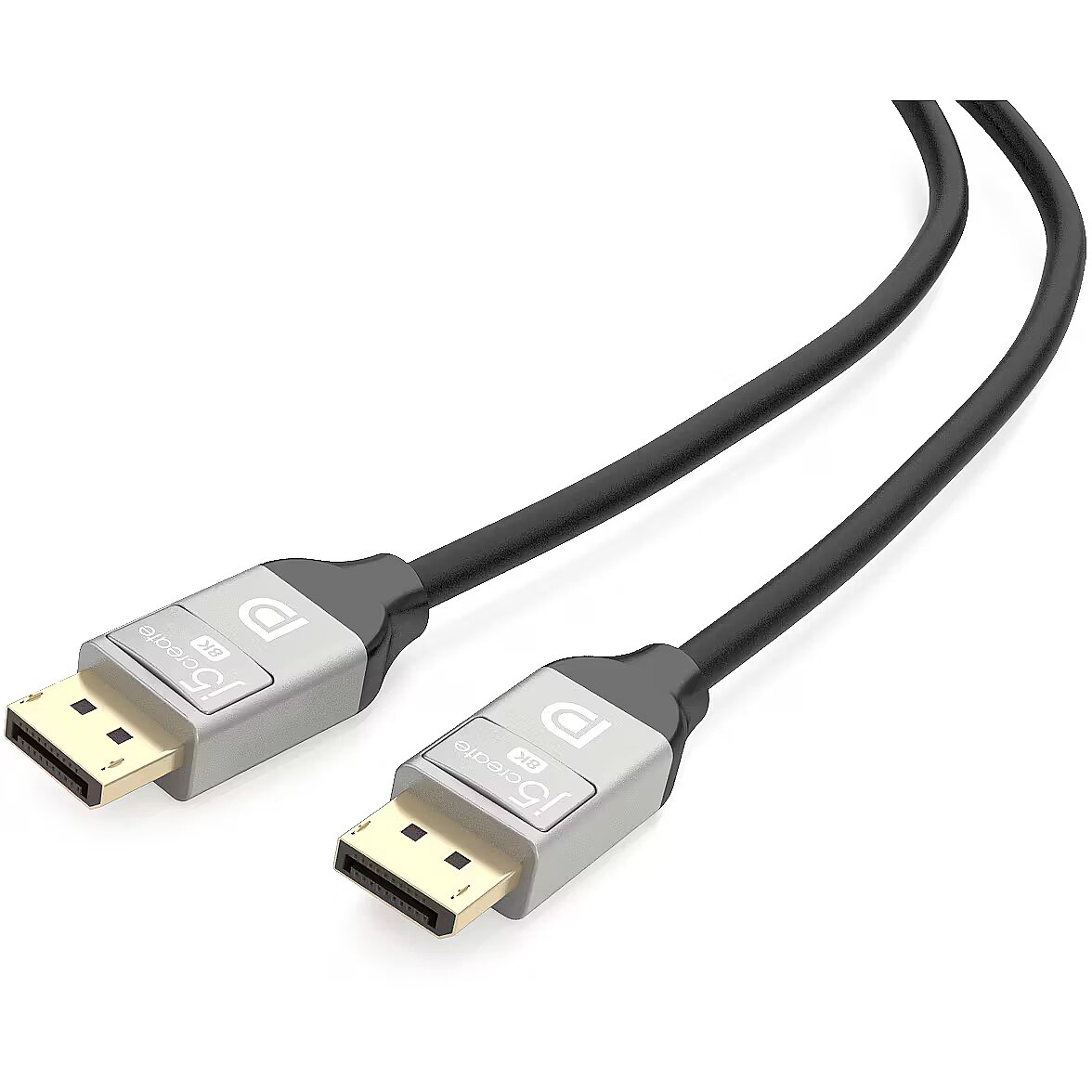 LongDesc - The JDC43 is an 8K DisplayPort™ cable that transmits both audio and video. DisplayPort™ v1.4 supports 8K UHD (7680 × 4320) at 60 Hz with 30 bit/px RGB color and HDR, or 4K UHD (4096 × 2160) at 120 Hz. It also supports 3D. The theoretical bandwidth is up to 32.4 Gbps. The JDC43 features a tinned copper conductor and aluminum + braided shielding, giving you a stable picture without distortion. Its gold-plated connectors allow for a seamless connection & reliable transmission. Latched connectors give the 8K DisplayPort™ cable a more secure connection. The JDC43 8K DisplayPort™ Cable allows you to connect a DisplayPort™ from a laptop, desktop or set-top box to a high-res monitor, HDTV or projector with DisplayPort™ input.