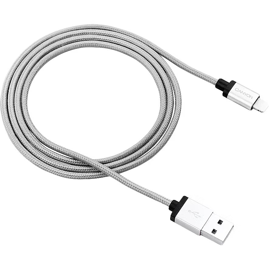 ProductDescription - CANYON Charge & Sync MFI braided cable with metalic shell, USB to lightning, certified by Apple, 1m, 0.28mm, Dark gray