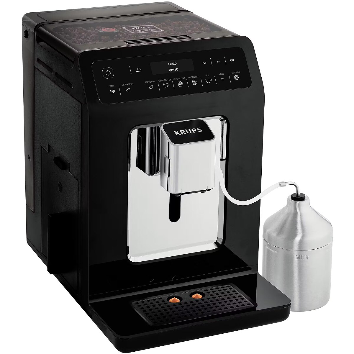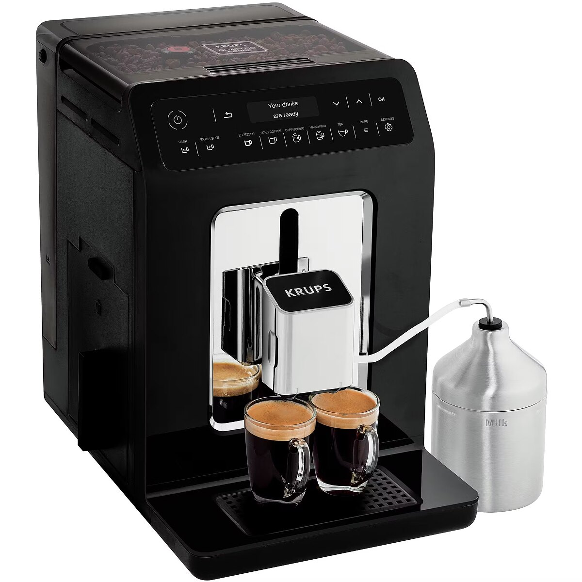 MediumDescription EN - Designed as the full package for perfect coffee drinks at home, the KRUPS Evidence automatic espresso machine produces flawless results down to the last detail. Create outstanding drinks from bean to cup with 15 different presets that cover all your favorites, with the KRUPS Quattro Force system for a difference you can taste and a sleek aesthetic that’s perfectly suited to any kitchen. • Outstanding home coffee experience down to the last detail, from bean to cup