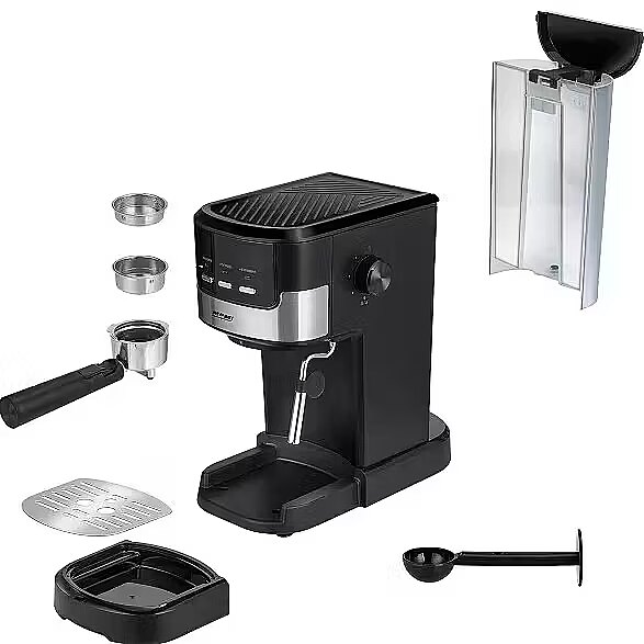 Other features - Aluminiowy boiler Dysza do spieniania mleka Gumowe antypoślizgowe przyssawki do blatu Lampka kontrolna Płynna regulacja mocy wytwarzania pary Wyjmowana tacka ociekowa