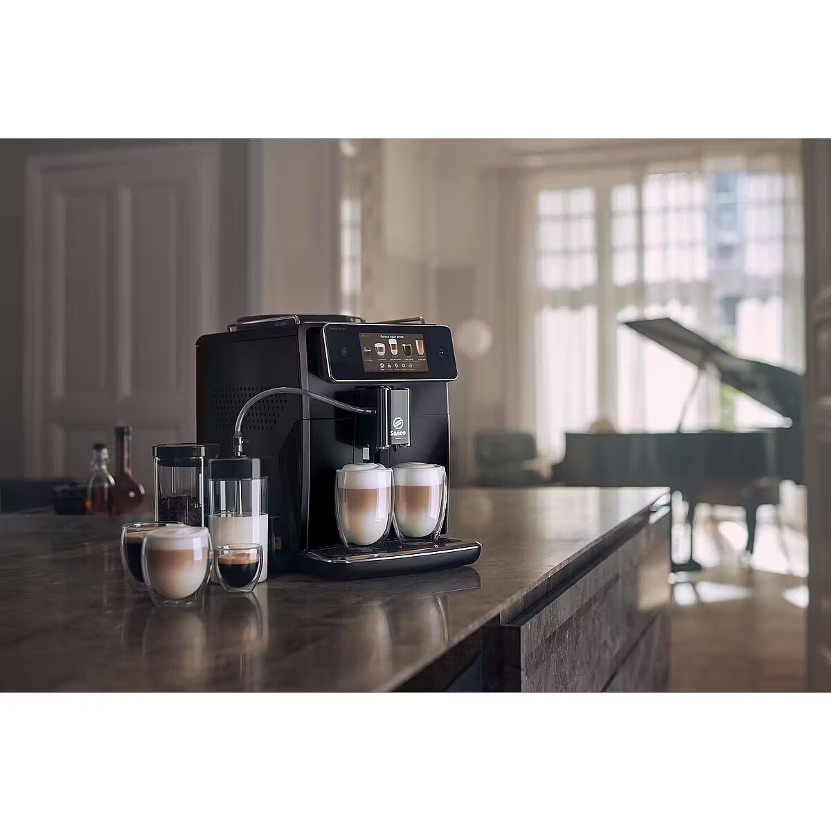 The model features a large touchscreen display that provides intuitive control. With the Saeco Xelsis "Deluxe", you can prepare up to 22 types of beverages, from a classic espresso to cappuccinos and latte macchiatos with perfect milk foam. The unique LatteDuo system allows you to prepare two milk-based drinks simultaneously. Ceramic grinders ensure a perfect grind, preserving the aroma of the beans. Personalization features allow you to create and save up to 8 user profiles, so every family member can customize their drinks to their liking. The built-in cleaning system and automatic descaling make machine maintenance simple and fast.
