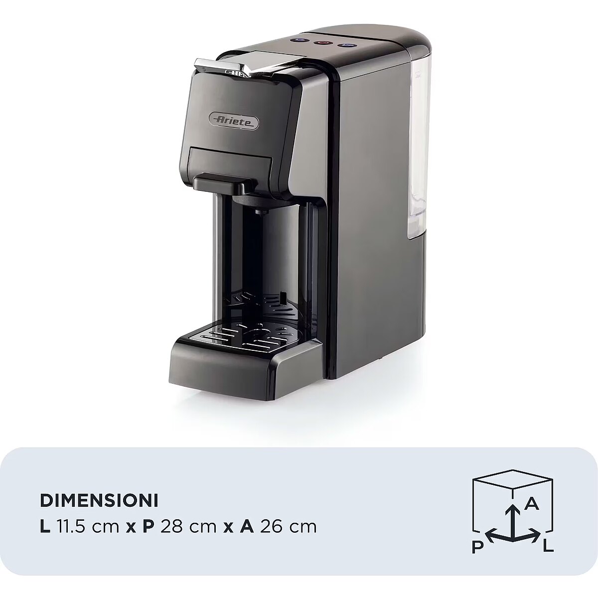 LongSummaryDescription - Ariete 1304/01. Product type: Espresso machine, Coffee maker type: Fully-auto, Water tank capacity: 0.7 L, Coffee input type: Ground coffee, Coffee pod, Coffee capsule, Reservoir for brewed coffee: Cup, Capacity in cups: 1 cups. Power: 1350 W. Product colour: Black