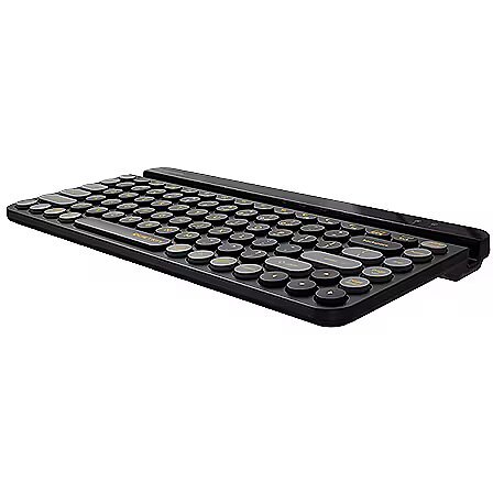 Description - FBK30 Bluetooth and 2.4G wireless connectivity Thanks to the patented QuietKey mechanism, combining high-elastic silicone and high-quality lubricant, it effectively reduces key rebound vibrations and eliminates friction noise while typing. Silent key The patented, innovative "QuietKey" technology is designed specifically to ensure quiet typing, reducing noise from 35 dB to 14 dB. Dual connection mode [BT+2.4 GHz] Bluetooth and 2.4 GHz connection. Replacing the operating system Compatible with Windows/Mac/iOS/Android, easily change layout from one operating system to another. Round, low profile keys in retro style The ultra-thin, round design of the retro-style keys allows for comfortable typing. Integrated tablet stand Hold your devices securely at the right angle for reading. Compact and fashionable Compact size of 86 keys, great keyboard that takes up little space.