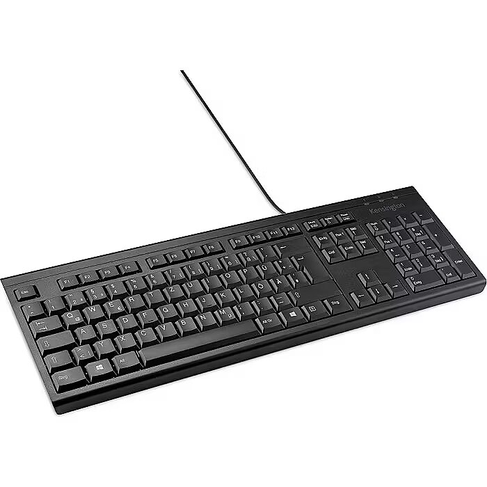 LongSummaryDescription - Kensington KB100 EQ Wired Full Size Keyboard. Keyboard form factor: Full-size (100%), Connectivity technology: Wired, Device interface: USB, Keyboard key switch: Membrane, Keyboard layout: QWERTZ, Recommended usage: Home/Office. Product colour: Black
