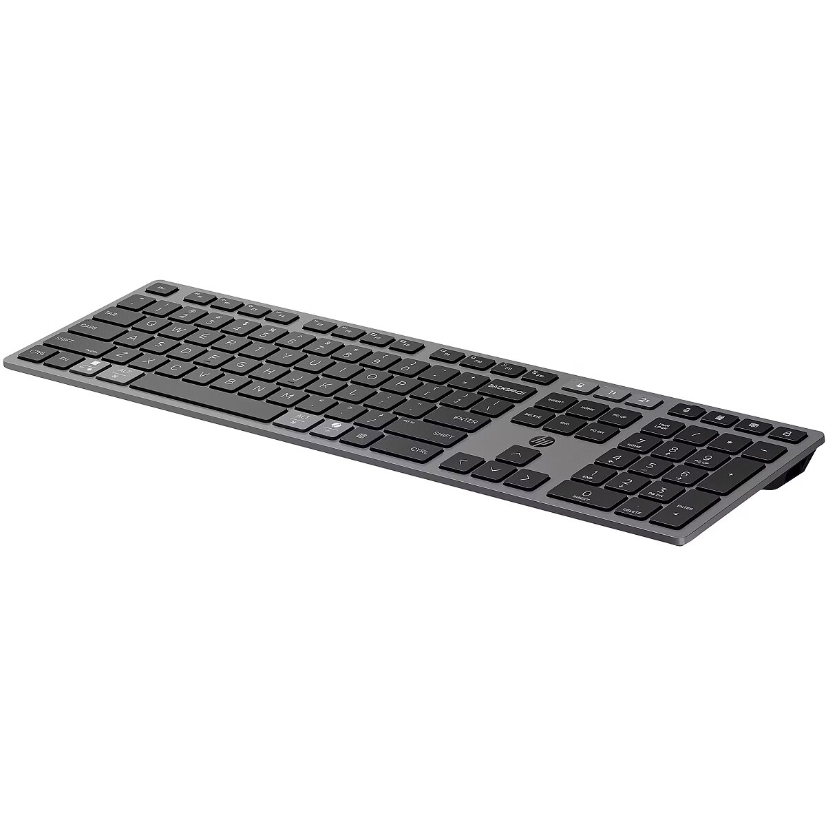 ShortSummaryDescription - HP 725 Multi-Device Rechargeable Wireless Keyboard and Mouse Combo, Full-size (100%), Wireless, RF Wireless + Bluetooth, Scissor key switch, Black, Mouse included
