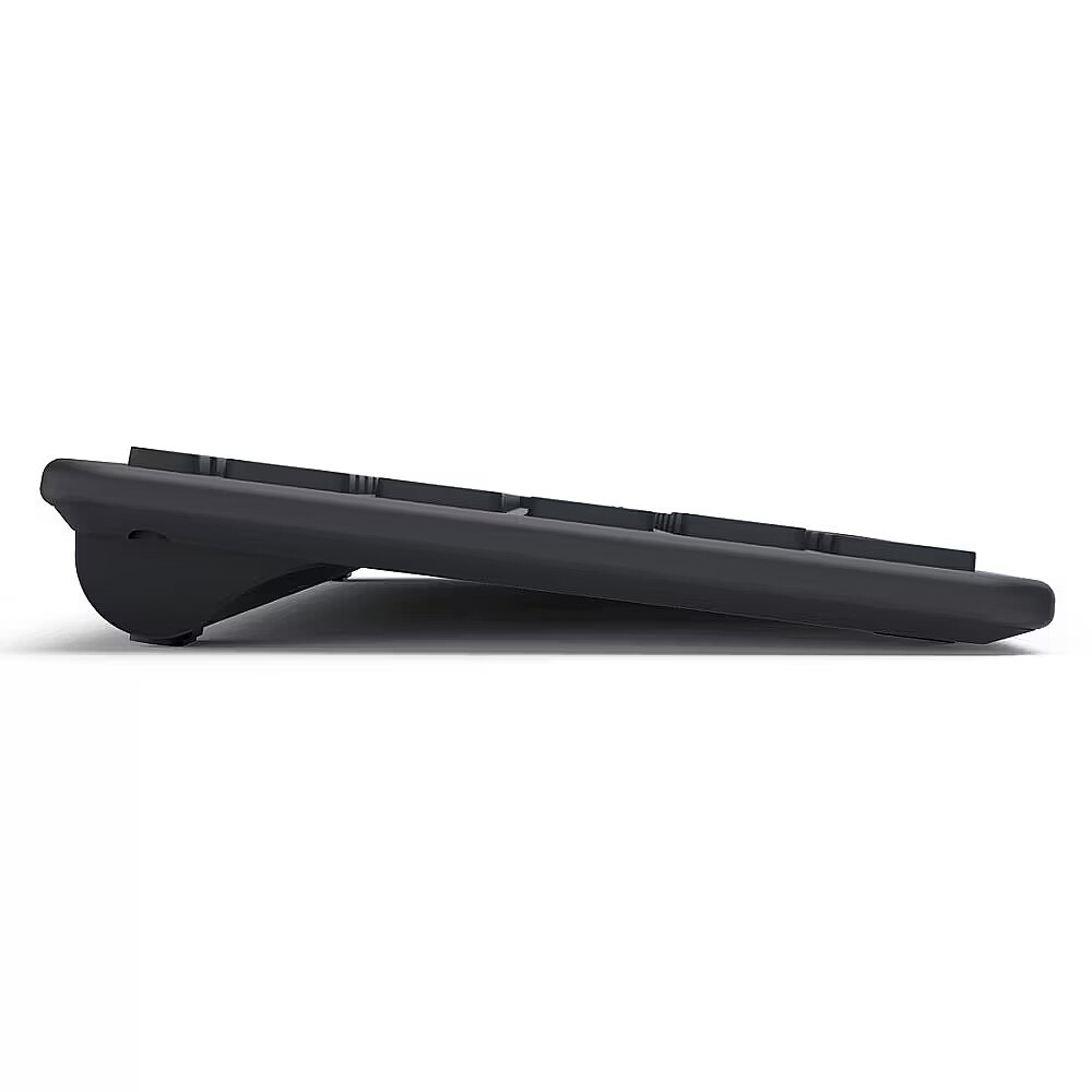 Funkcjonalność: Łączność radiowa USB (1 urządzenie) i Bluetooth (2 urządzenia) Ciche klawisze Szybka obsługa multimediów z klawiszami F Pełnowymiarowa klawiatura z blokiem numerycznym 90% rozmiaru standardowej klawiatury Przycisk asystenta AI Microsoft Copilot (sztuczna inteligencja) Odbiornika USB można przechowywać w obudowie klawiatury Tryb uśpienia po 5 minutach bezczynności Ustawiona pod kątem Klawiatura wykonana w 65% z materiałów pochodzących z recyklingu Opakowanie wolne od plastiku, wykonane z papieru z certyfikatem FSC UWAGA: układ klawiszy QWERTY (polski) - zdjęcia przedstawiają jedynie poglądowy wygląd klawiatury Bezprzewodowa wygoda pracy
