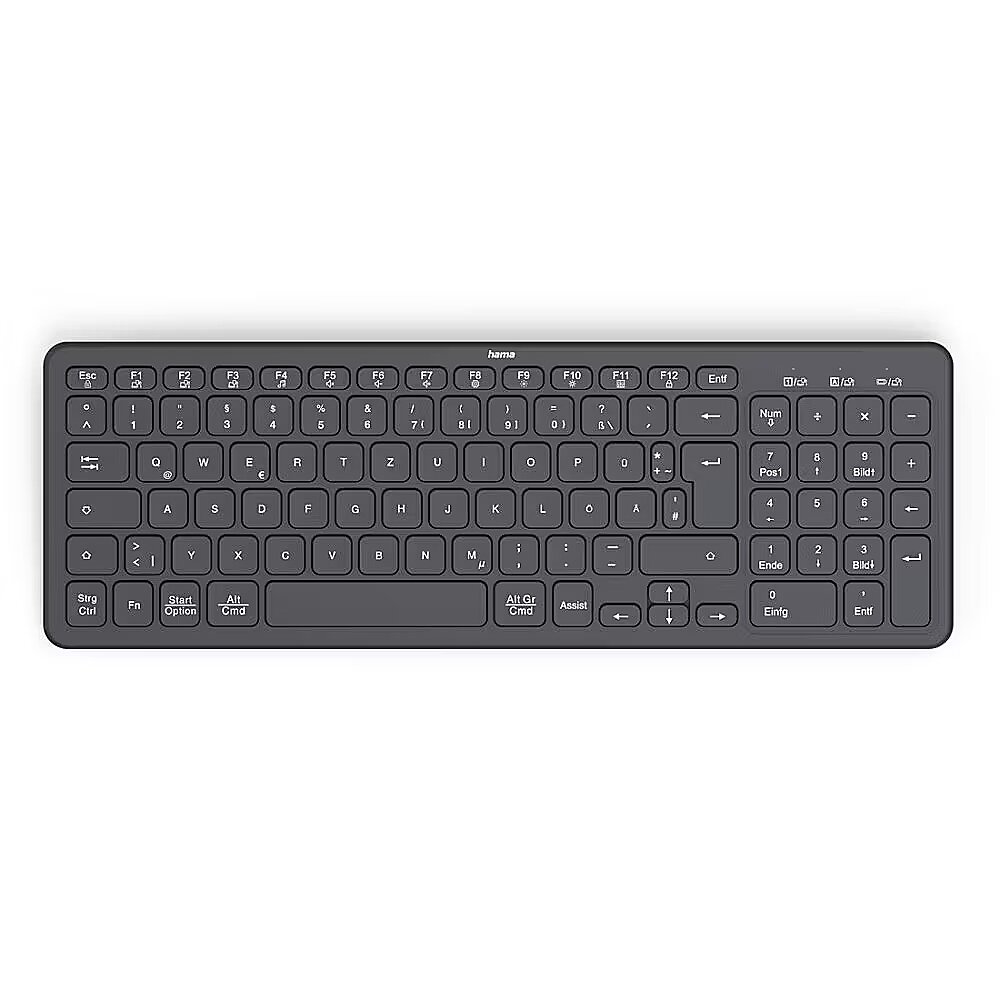 Description - Pełnowymiarowa klawiatura bezprzewodowa, umożliwiająca połączenie z 3 urządzeniami