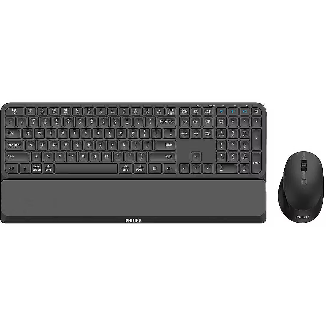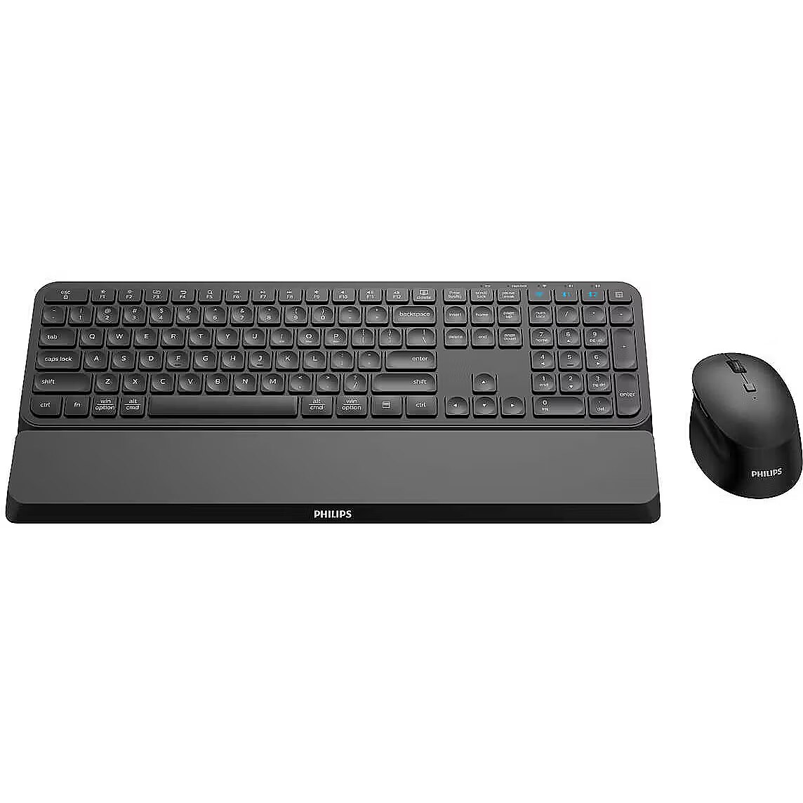 LongSummaryDescription - Philips 6000 series SPT6607B/00. Keyboard form factor: Full-size (100%), Connectivity technology: Wireless, Device interface: RF Wireless + Bluetooth, Keyboard key switch: Mechanical, Keyboard number of keys: 110, Recommended usage: Home. Product colour: Black. Mouse included
