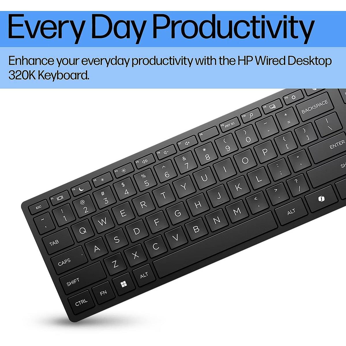 LongDesc - Every Day ProductivityWork efficiently and enhance your everyday productivity with the comfortable, reliable HP Wired Desktop 320K Keyboard.