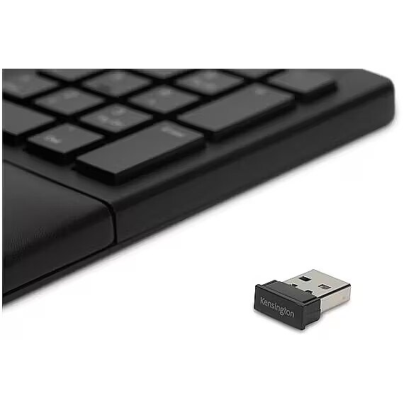 LongSummaryDescription - Kensington ProFit Ergo Wireless Keyboard FR. Keyboard form factor: Full-size (100%). Keyboard style: Curved. Connectivity technology: Wired & Wireless, Device interface: RF Wireless + USB, Keyboard layout: AZERTY. Wrist rest. Recommended usage: Universal. Product colour: Black