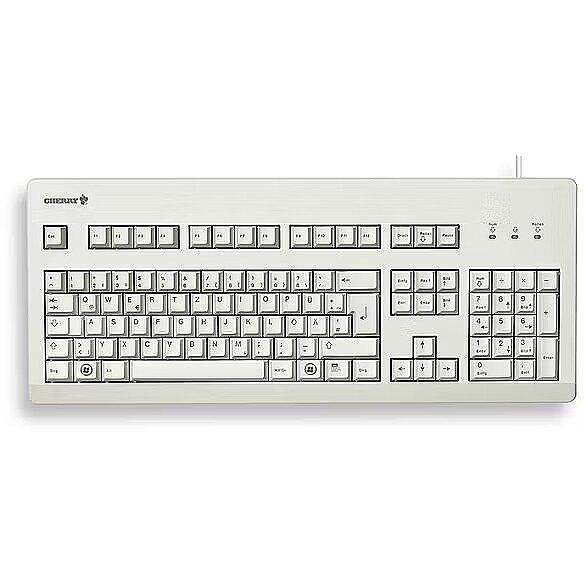 LongSummaryDescription - CHERRY G80-3000. Keyboard form factor: Full-size (100%). Keyboard style: Straight. Connectivity technology: Wired, Device interface: USB, Keyboard layout: QWERTZ, Keyboard number of keys: 105. Cable length: 1.75 m. Recommended usage: Universal. Product colour: Grey