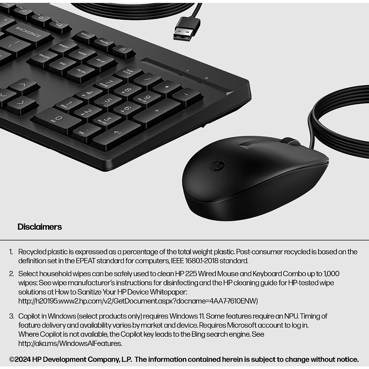 ProdDesc - HP 225 G2 USB Wired Mouse Keyboard Combo, Copilot Key - Black - ESTONIAN
