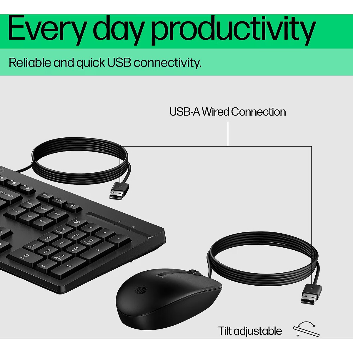 ShortSummaryDescription - HP 225 Wired Mouse and Keyboard Combo, Full-size (100%), Wired, USB, Black, Mouse included