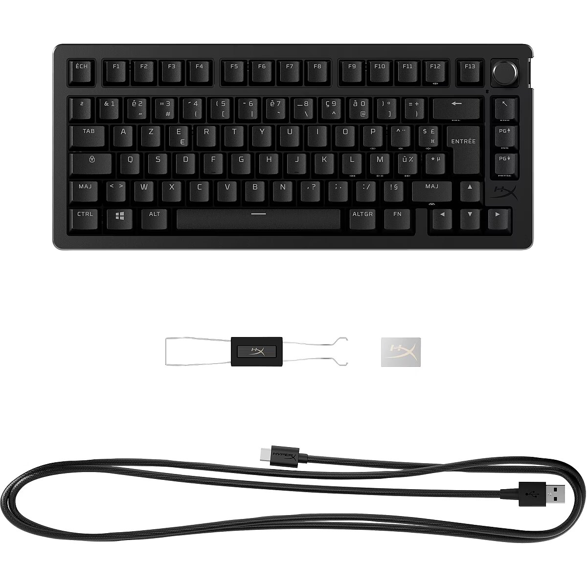 LongDesc - The 75% gaming keyboard, elevated.As the world's most customizable toolless mechanical gaming keyboard on the market5, the HyperX Alloy Rise 75 takes personalization to the next level. Not only can you hot-swap in key switches, but also magnetic top plates, badges, and more. All that customization is built onto its compact, solid frame and ultra-responsive 8k polling rate, giving you rapid keypress detection and more room. Out of the box, this keyboard features pre-lubed HyperX Linear Switches rated for up to 80 million keypresses1 as well as pre-installed HyperX PBT Keycaps. The 75% form factor is a great balance between compactness and function, providing dedicated arrow keys, navigation keys, and F keys. You’ll also get an upgraded RGB experience courtesy of the ambient light sensor that auto-adjusts the brightness, 10 keyboard profiles saved directly to the keyboard, and powerful customization via HyperX NGENUITY Software. Get one step closer to your endgame with the HyperX Alloy Rise 75.