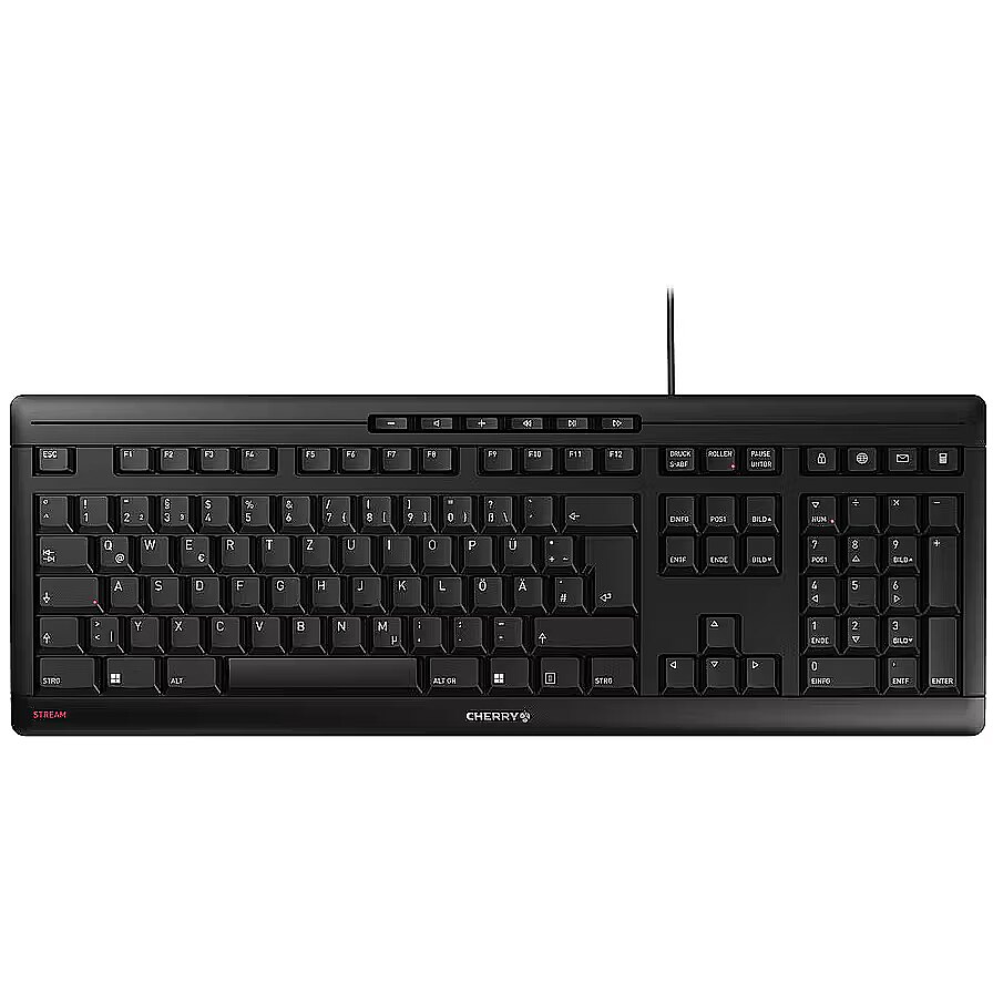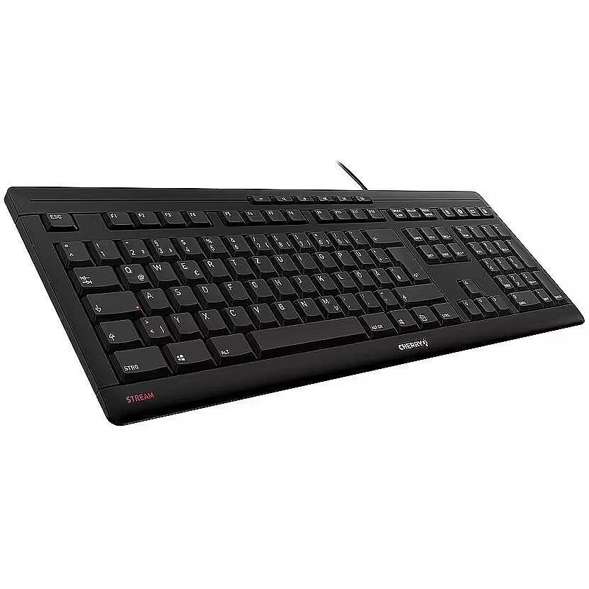 LongDesc - The CHERRY STREAM KEYBOARD meets the highest standards and gives you an incomparable typing feel. Its mixture of design, elegance and purity gives it the potential to be a very popular keyboard for the office and at home.THE KEYBOARD – the best STREAM of all time!Why settle for just any old keyboard? The CHERRY STREAM is the ultimate keyboard and always the right choice. It has been refined over the years to absolute perfection through several product generations. Cleverly designed right down to the finest detail, this genuine all-rounder is one of the world’s best-selling keyboards. Is it because of its special typing feel, its reliability or its long-lasting precision? Whatever it is, every day all over the world start-ups type their business plans, banks their balance sheets, authors their books and engineers their project plans on the CHERRY STREAM. And what are you using?The CHERRY STREAM is the ideal keyboard for every assignment.It’s robust, reliable and durable. That's because there’s quality in every detail: from above, from below and inside. Because – uniquely in its price category – the CHERRY STREAM uses scissor switches for the keys. This is a keyboard technology which is also used in high-end laptops, and produces a very special typing feel.The CHERRY SX scissor mechanismNo delays on the screen, fluent typing without stopping, control over the input at all times and thus fewer typos. The unique SX scissor technology from CHERRY makes this possible. You tap on flatter keys, giving you a more precise stroke as well as less wear and tear. Minute by minute, day by day, year on year.Shh, it is so quiet ....When you’re typing on the CHERRY STREAM KEYBOARD, you won’t disturb yourself or anyone around you. That’s because the CHERRY STREAM is so quiet that your colleagues can concentrate on their own work. Even if you fire off an e-mail with a bang. This makes it an indispensable companion in many offices, especially open-plan ones. Once you’ve tried it, you’ll never want to use any other keyboard....and it’s so pleasant and effortless to type on.Your fingers lie comfortably on the keys. Typing is precise and comfortable. Nothing jams, your fingers don't slip, each key gives a clear response and they all feel the same. It's a great way to work. The keys are exactly the right size, not too big, not too small – and they don’t wobble from side to side. That’s what we call a well-defined pressure point. And best of all, there’s even more that our keys can do. With the 10 handy extra keys you can control your music and open the browser or calculator function.Simple, elegant – and with quality inside.The technology is not the only thing in the CHERRY STREAM that meets very high standards. The ultimate keyboard is also way ahead when it comes to environmental friendliness. Compliance with quality and environmental targets and directives is rightly becoming more and more important. Protecting our environment is also part of our corporate philosophy at CHERRY. We’re proud that the CHERRY STREAM has been awarded the Blauer Engel environmental certification. The GS safety mark also certifies that the product complies with all relevant European directives and regulations associated with the protection of health.The CHERRY STREAM is always the right choice for typing.Why IS THE KEYBOARD ONLY WRITING CAPITAL LETTERS AGAIN? Because the Caps Lock key has been pressed! You can see that instantly on the new CHERRY STREAM thanks to the three integrated status displays for Caps Lock, Num Lock and Scroll Lock. The three LEDs light up to indicate the status so that you can concentrate on what you’re typing.