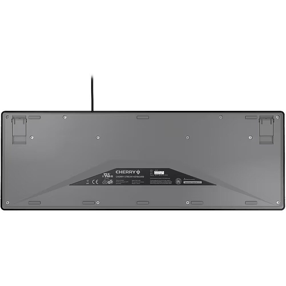 LongSummaryDescription - CHERRY STREAM. Keyboard form factor: Full-size (100%). Keyboard style: Straight. Connectivity technology: Wired, Device interface: USB, Keyboard key switch: Scissor key switch, Keyboard layout: QWERTY, Keyboard number of keys: 115. Cable length: 1.8 m. Recommended usage: Home/Office. Product colour: Black, Grey