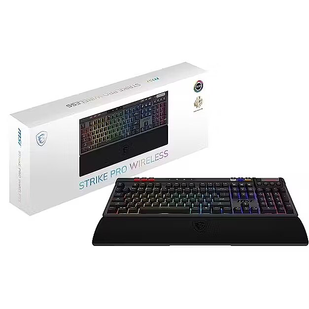 Silent precision. Complete control. The STRIKE PRO WIRELESS keyboard combines quiet Kailh Midnight Pro mechanical switches, hot-swappable functionality, and three connection modes. With PBT keycaps featuring dye-sublimated legends, per-key RGB lighting, and an ergonomic magnetic wrist rest made of memory foam, this keyboard delivers exceptional comfort and customization. A 4200 mAh battery, smart scroll wheel, and included accessories make it perfect for both work and play. Quiet typing experience