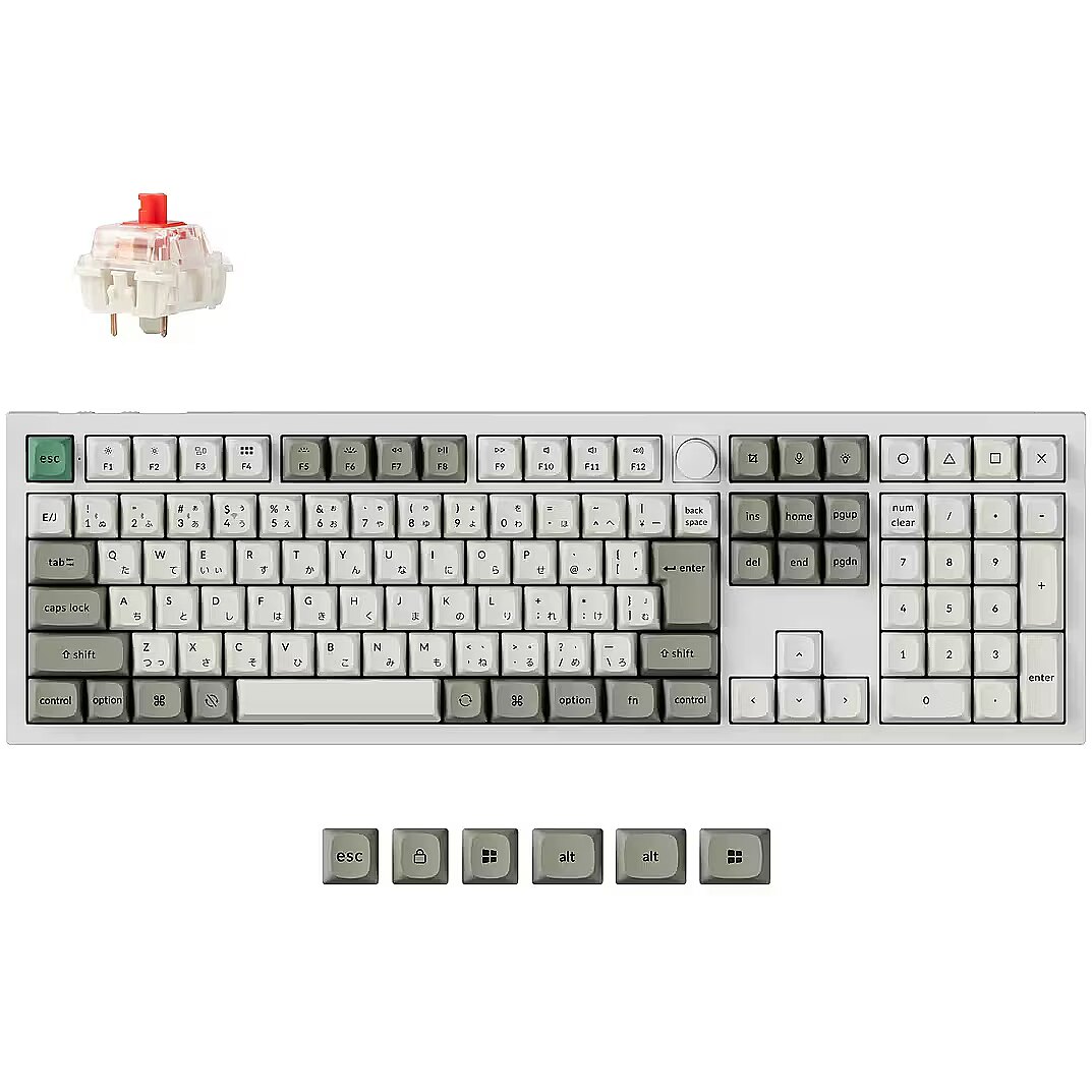 Summary - Keychron Q6 Max. Keyboard form factor: Full-size (100%). Keyboard style: Straight. Connectivity technology: Wired & Wireless, Device interface: USB + RF Wireless + Bluetooth, Keyboard key switch: Mechanical, Keyboard layout: QWERTY, Keyboard number of keys: 108. Backlight type: RGB LED. Recommended usage: Universal. Product colour: White