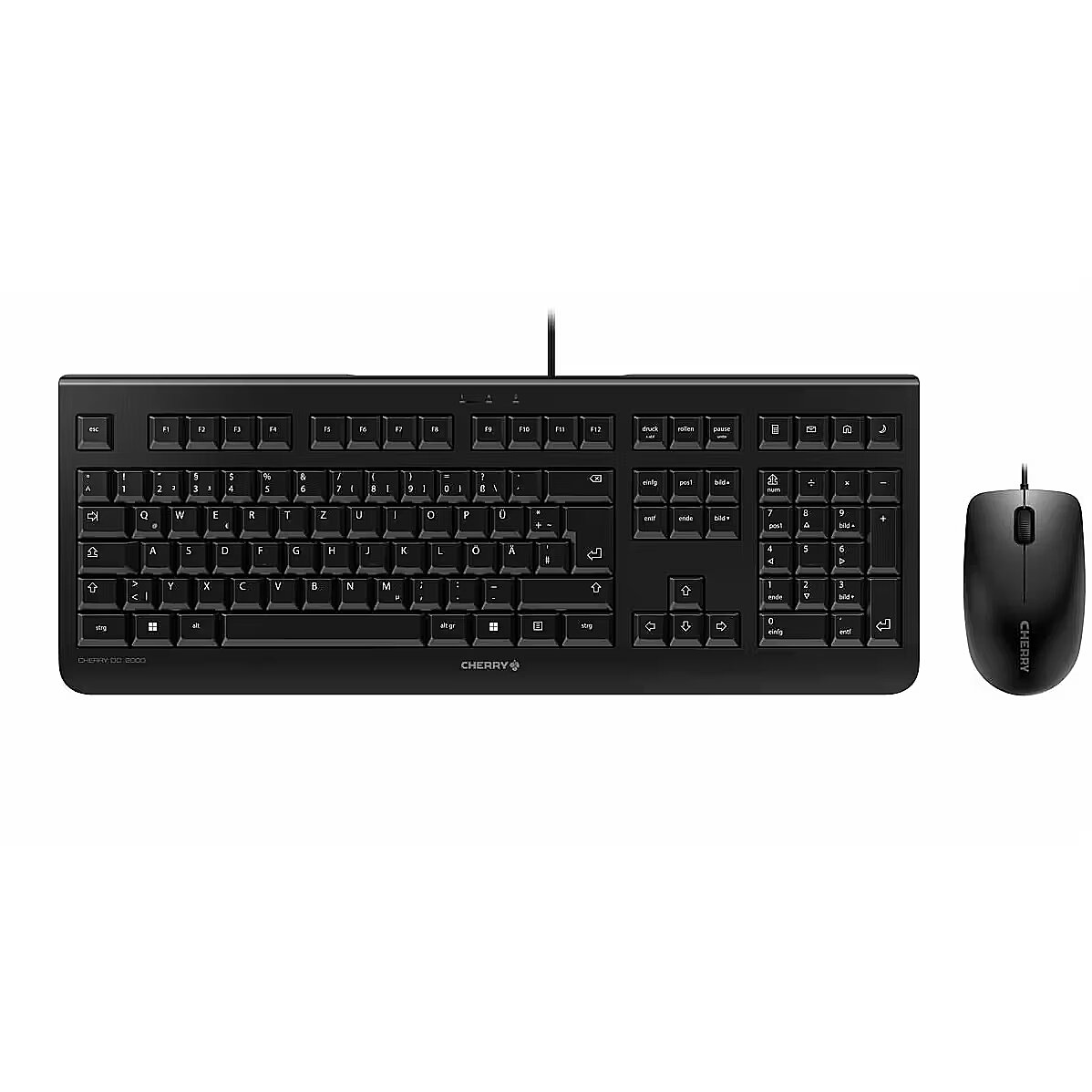 LongSummaryDescription - CHERRY DC 2000. Keyboard form factor: Full-size (100%). Keyboard style: Straight. Connectivity technology: Wired, Device interface: USB, Keyboard layout: QWERTZ, Keyboard number of keys: 109. Cable length: 1.8 m. Recommended usage: Home/Office. Product colour: Black. Mouse included