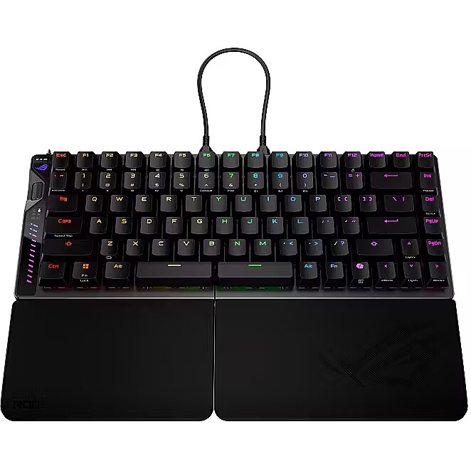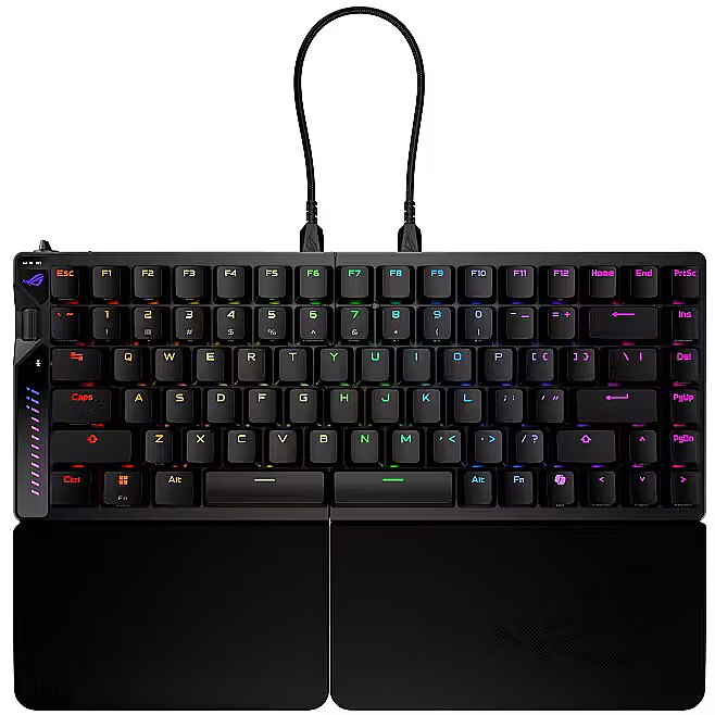 LongProductName - ROG Falcata 75% split gaming keyboard with hot-swappable ROG HFX V2 Magnetic Switches and ROG Hall Sensor; featuring Rapid Trigger toggle, intuitive control and multi-function wheel, tri-mode connectivity with ROG SpeedNova 8K wireless technology, Zone Mode, four-layer dampening and detachable silicone wrist rests