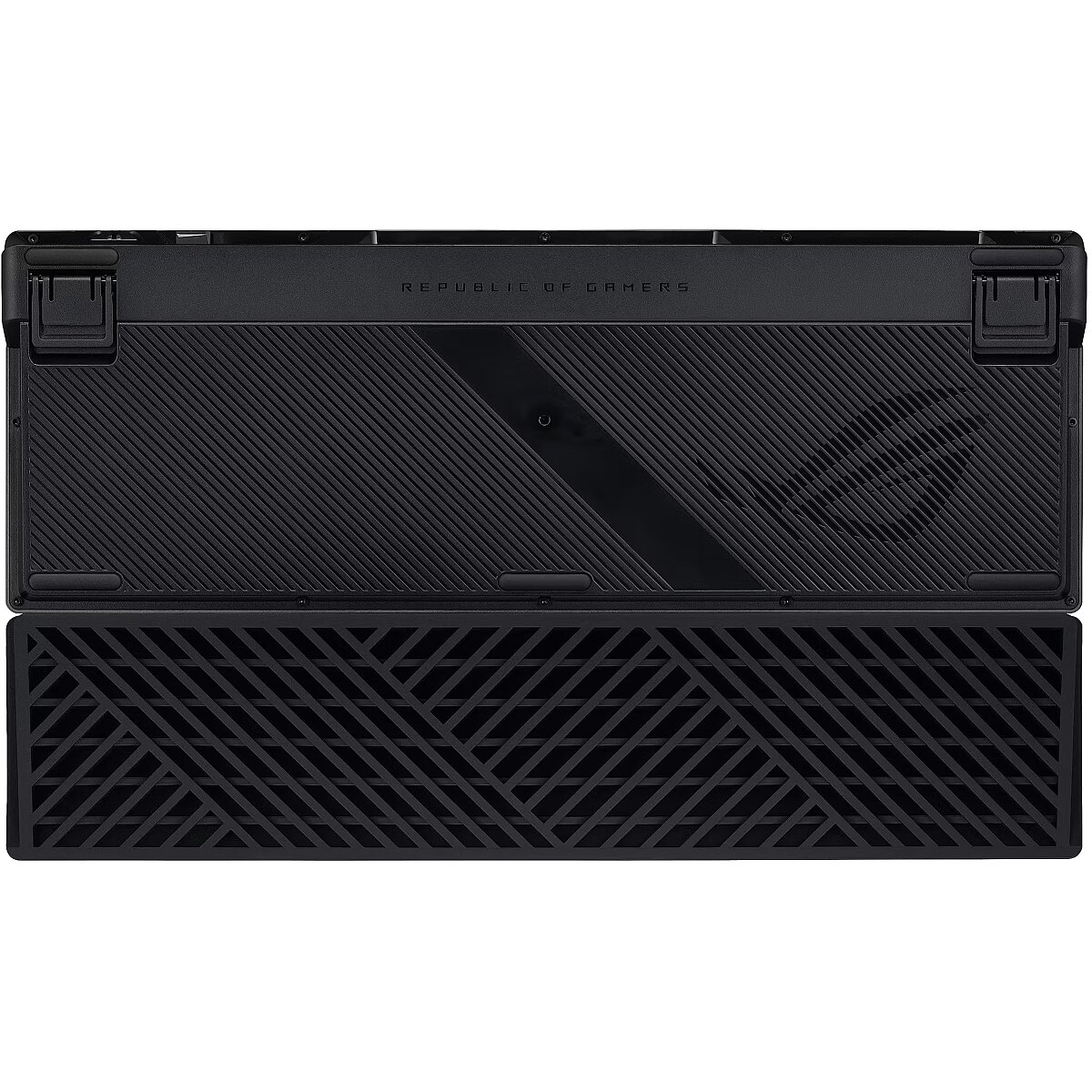 LongProductName - ROG Azoth 96 HE analog gaming keyboard with hot-swappable ROG HFX V2 magnetic switches and ROG Hall Sensor; featuring an OLED display, three-way knob, tri-mode connectivity with ROG SpeedNova 8K wireless technology, Zone mode, six-layer dampening and detachable silicone wrist rests