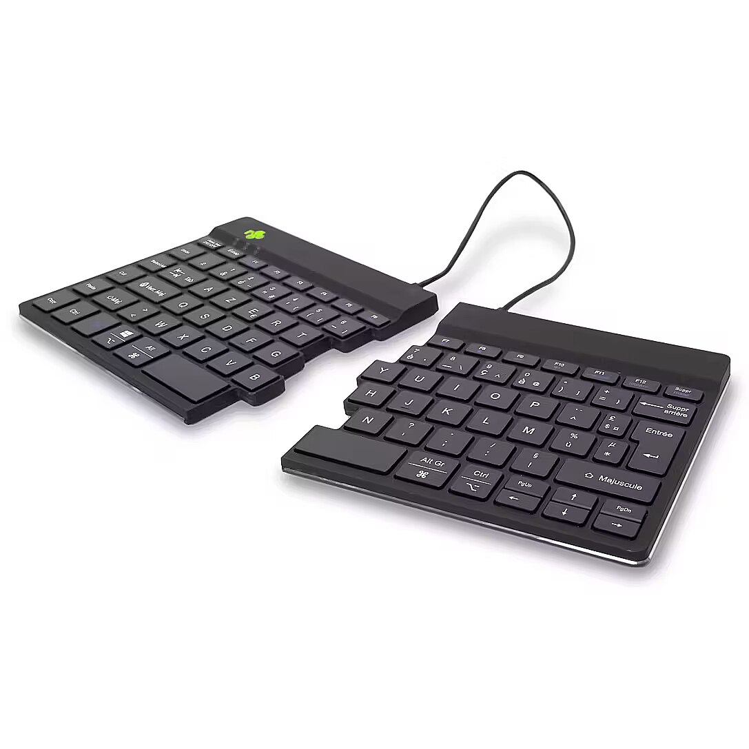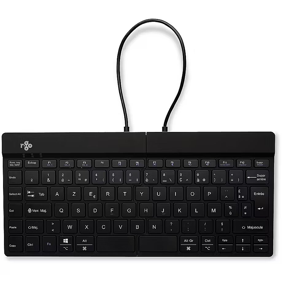 ShortSummaryDescription - R-Go Tools Ergonomic keyboard R-Go Split Break with break software, ergonomic split keyboard, AZERTY (FR), Bluetooth, black, Mini, Wireless, Bluetooth, Scissor key switch, AZERTY, Black