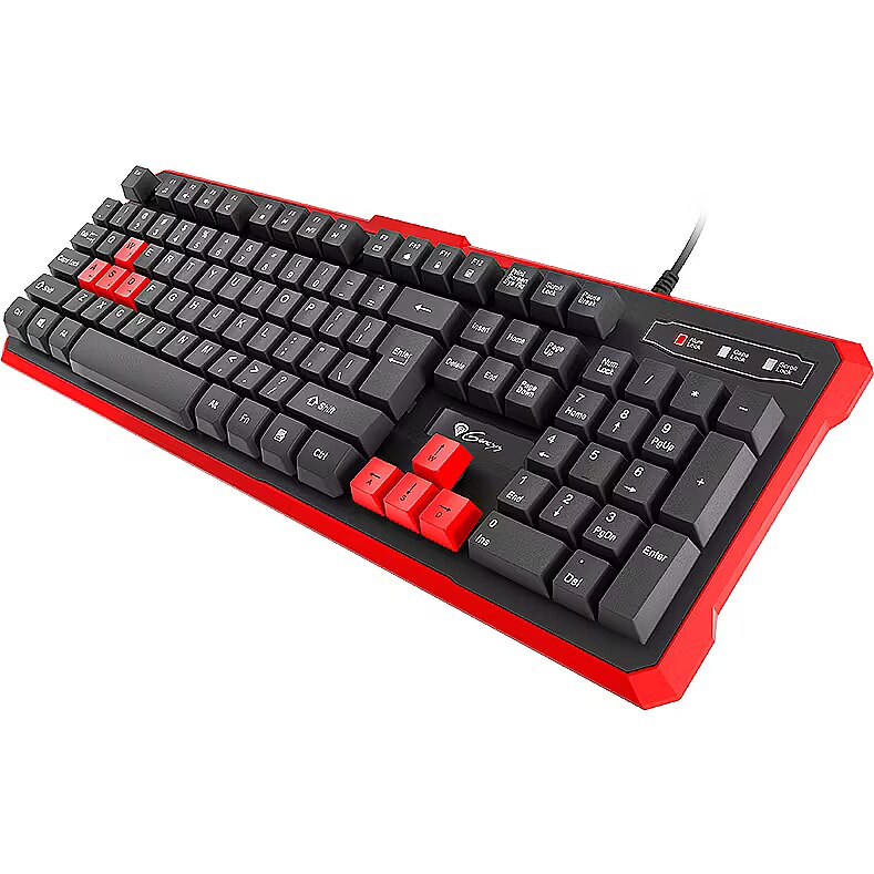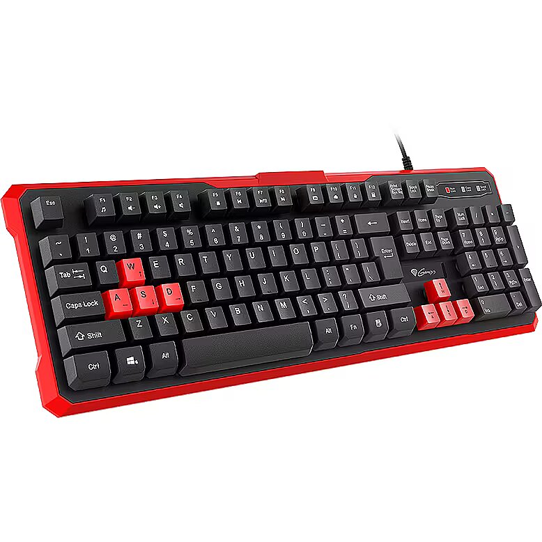 LongDesc - GOOD START WITH GENESIS RHOD 110What the gamer needs most is a sense of control over the game. A good keyboard is the one, which makes this control easy. Not every gamer prefers mechanical keyboards, sometimes we expect simplicity and a solid basis for the good of entry into the world of e-sport. For a good start for games Genesis has developed a membrane keyboard Rhod 110. Simplicity combined with robust functionality are the strongest points.ANTI-GHOSTING IS THE BASISThe basis of the game nature of Rhod 110 is the function of anti-ghosting for 19 keys in the most important zones for the gamer. In this way we will avoid unpleasant locking of the keyboard when we press several keys at the same time wishing to perform an effective action in the game. This function boosts the comfort of the game considerably.SPILLAGE IS NOT HORRIBLE TO ITThe keyboard Rhod 110 was constructed so that the membrane is protected against accidental spillage in the best possible way. Now even when the gamer gets excited and spills his favourite drink on the desk, special holes in the design of the keyboard will discharge the liquid outside.WINDOWS DOES NOT DISTURB ANY LONGERRhod 110 also has the function of locking the Windows key, which the gamers like in particular. It prevents an accidental stopping of game and exit to the desktop and at the same time the discontinuation of the thrilling game.DURABLE KEYSThe advantage of the keyboard are also laser burned letters on the keys. With this the service life of letters increases even several times. Now even when often used, the Rhod 110 keys will not wear out quickly.MULTIMEDIA UNDER CONTROLOften during the game you need a quick access to the main functions of multimedia. Intuitively placed multimedia buttons (from F1 to F12) make that using the keyboard is even more comfortable and media control much easier.ADDITIONAL KEYSFor each keyboard Rhod 110 we have added 8 red keys replacing WASD and "arrows". All designed for more comfort of the game. Now the gamer decides himself what the final design of his keyboard will look like.EVEN MOR COMFORTAdditional solutions, which enhance comfort and control over the game are rubber spaced legs and a long (1.7 m) durable cable.