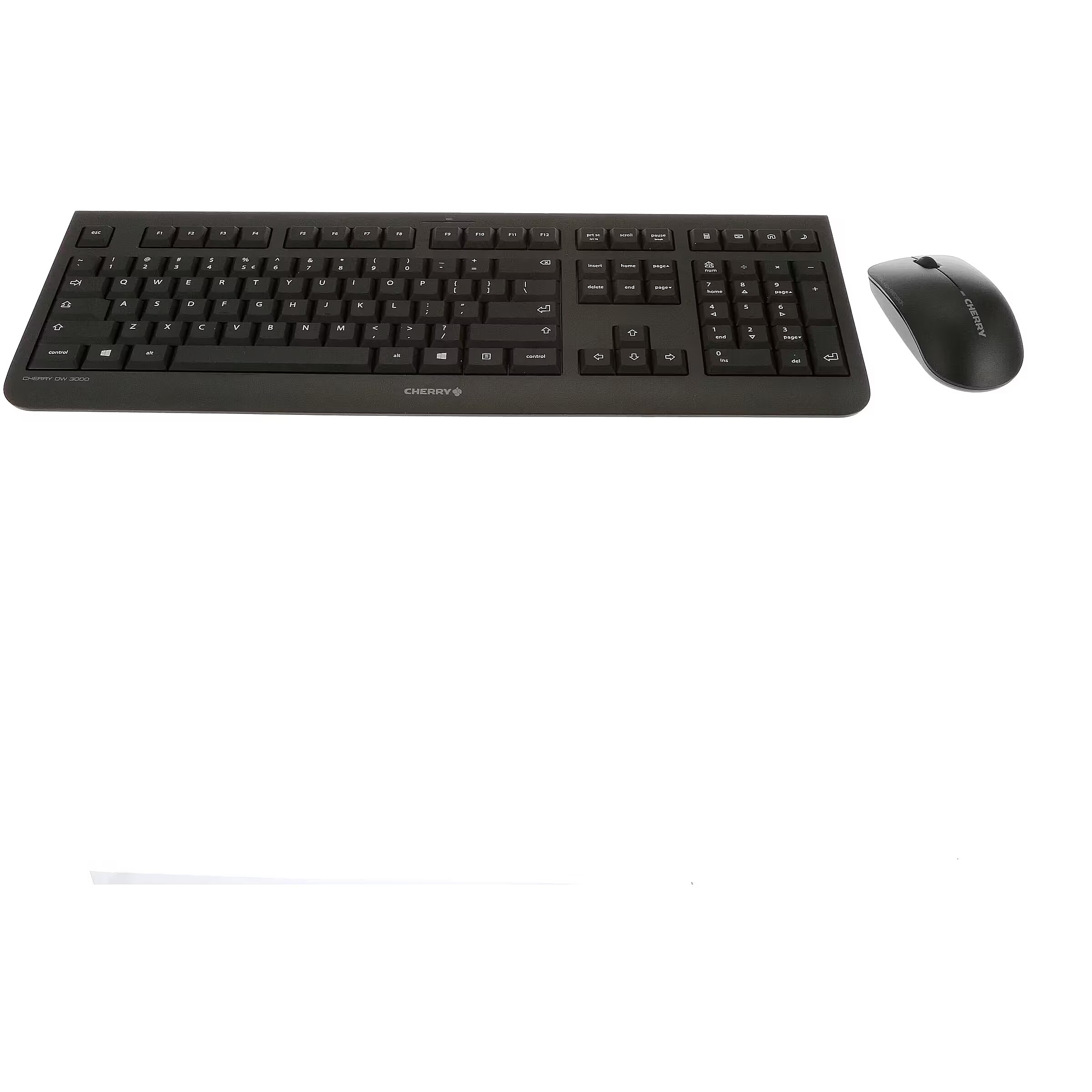 LongSummaryDescription - CHERRY DW 3000. Keyboard form factor: Full-size (100%). Keyboard style: Straight. Connectivity technology: Wireless, Device interface: RF Wireless, Keyboard layout: QWERTY, Keyboard number of keys: 108, Recommended usage: Universal. Product colour: Black. Mouse included